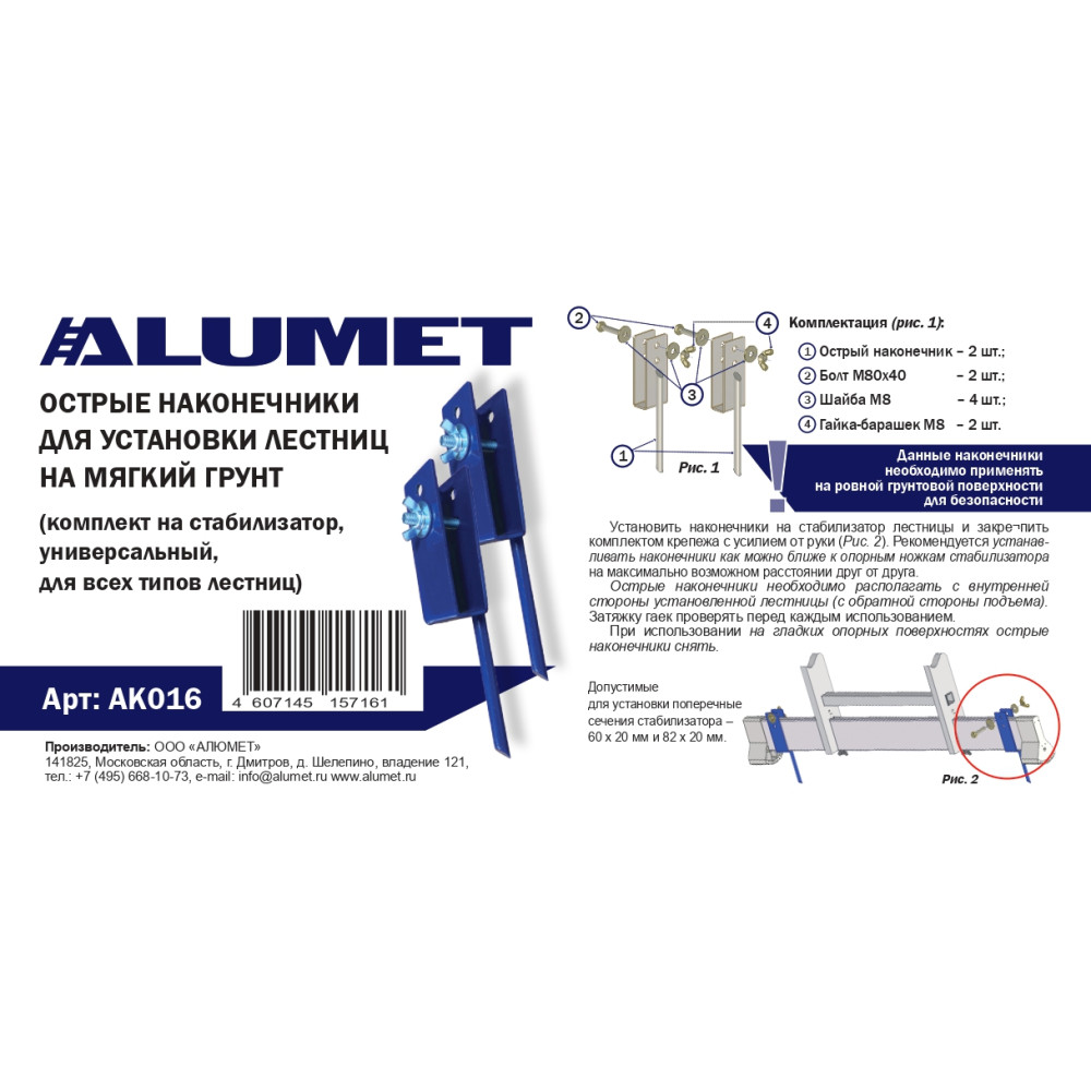 Острые наконечники для установки лестниц на мягкий грунт