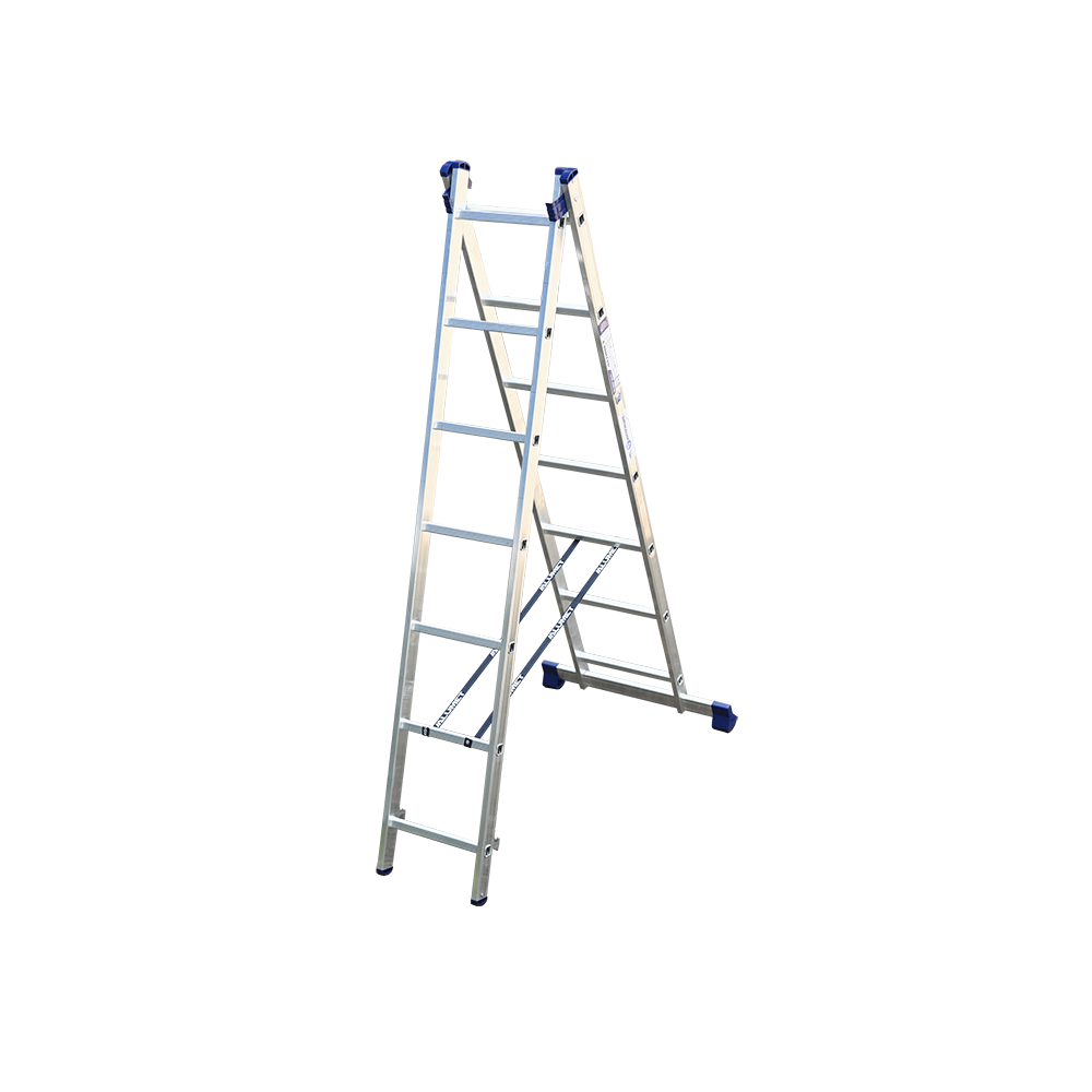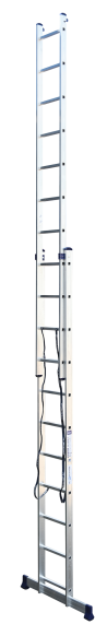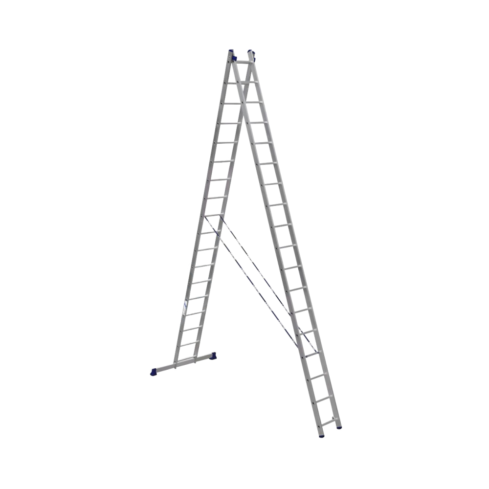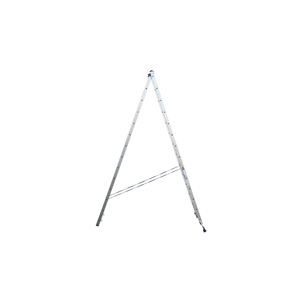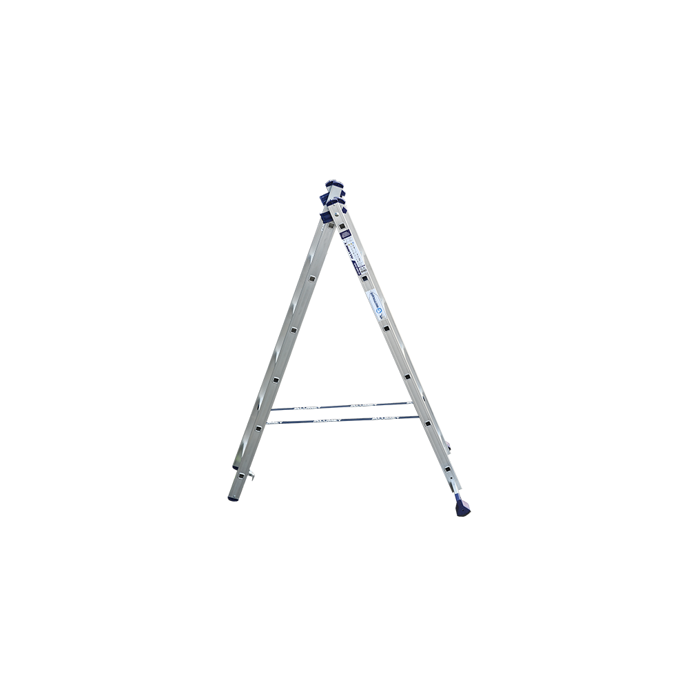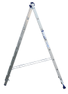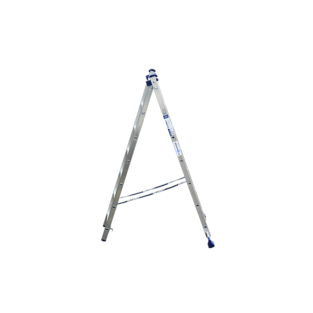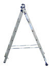 Универсальность лестницы заключается в том, что она может использоваться как раздвижная приставная лестница и как свободностоящая двухсторонняя стремянка.