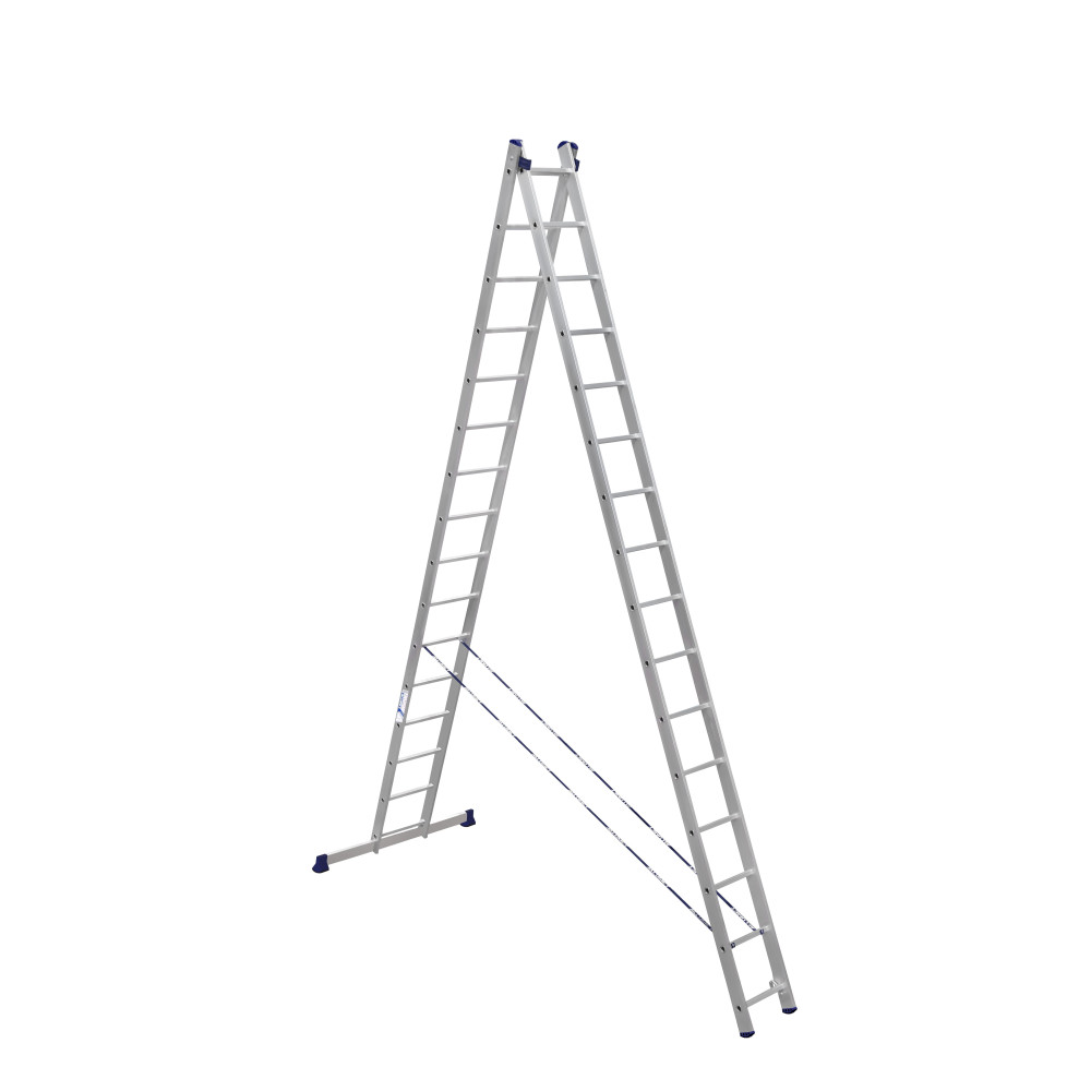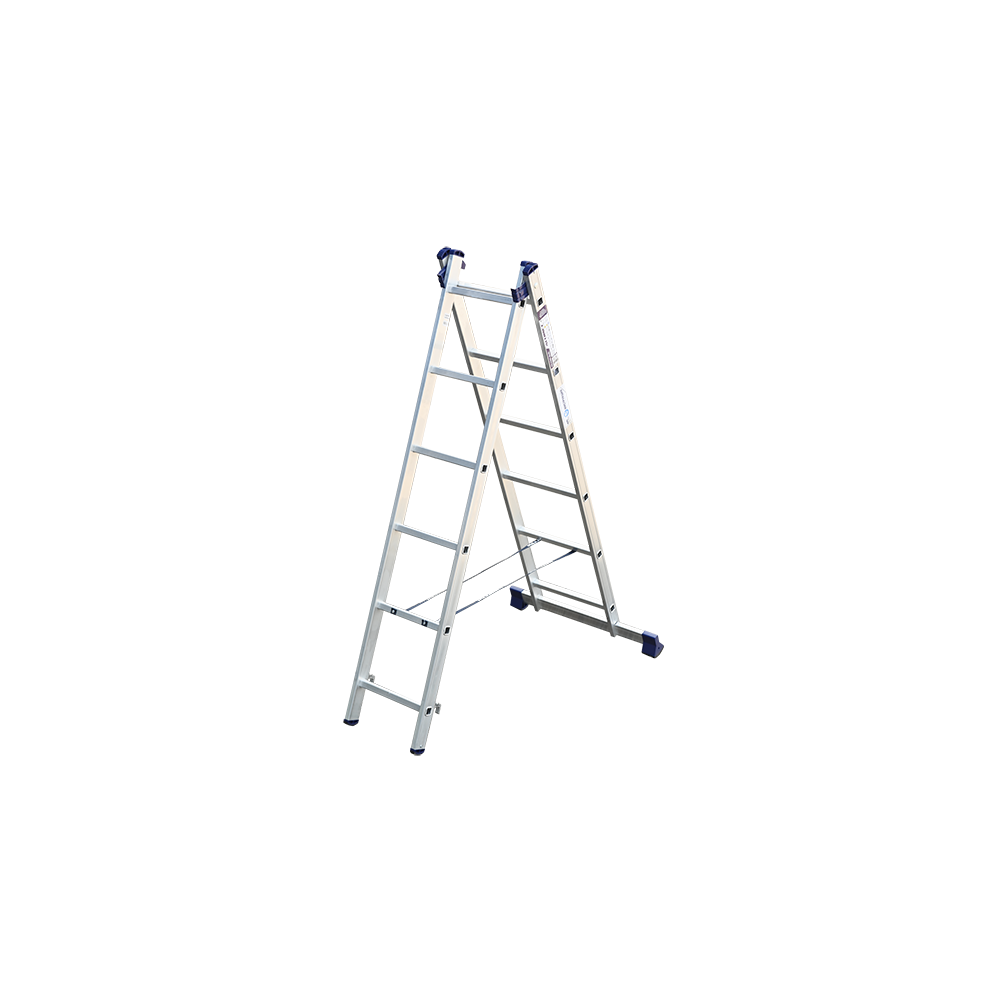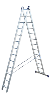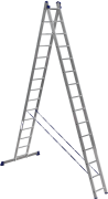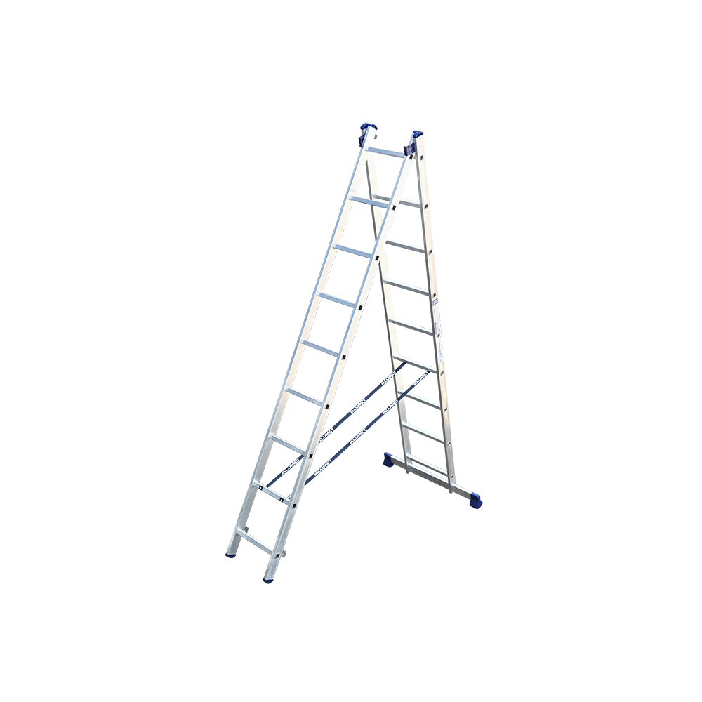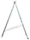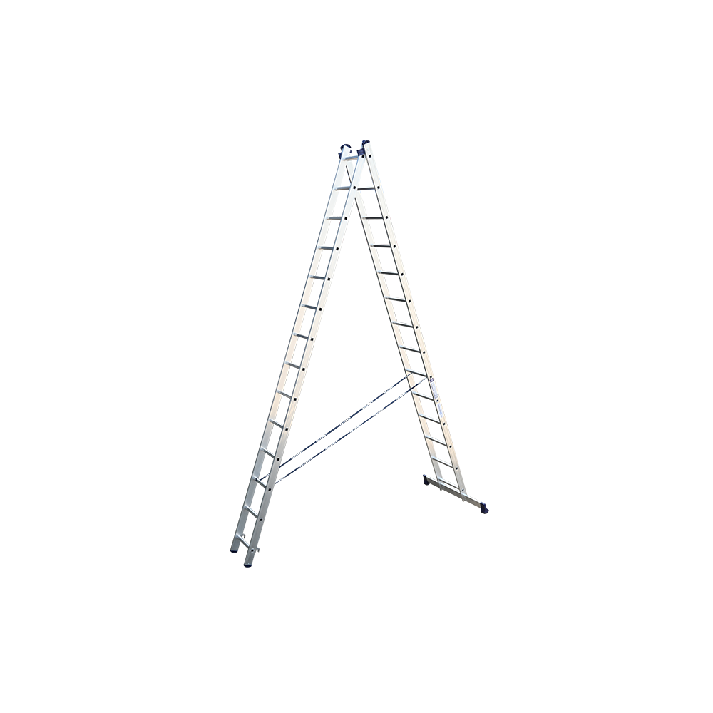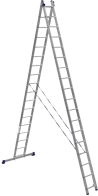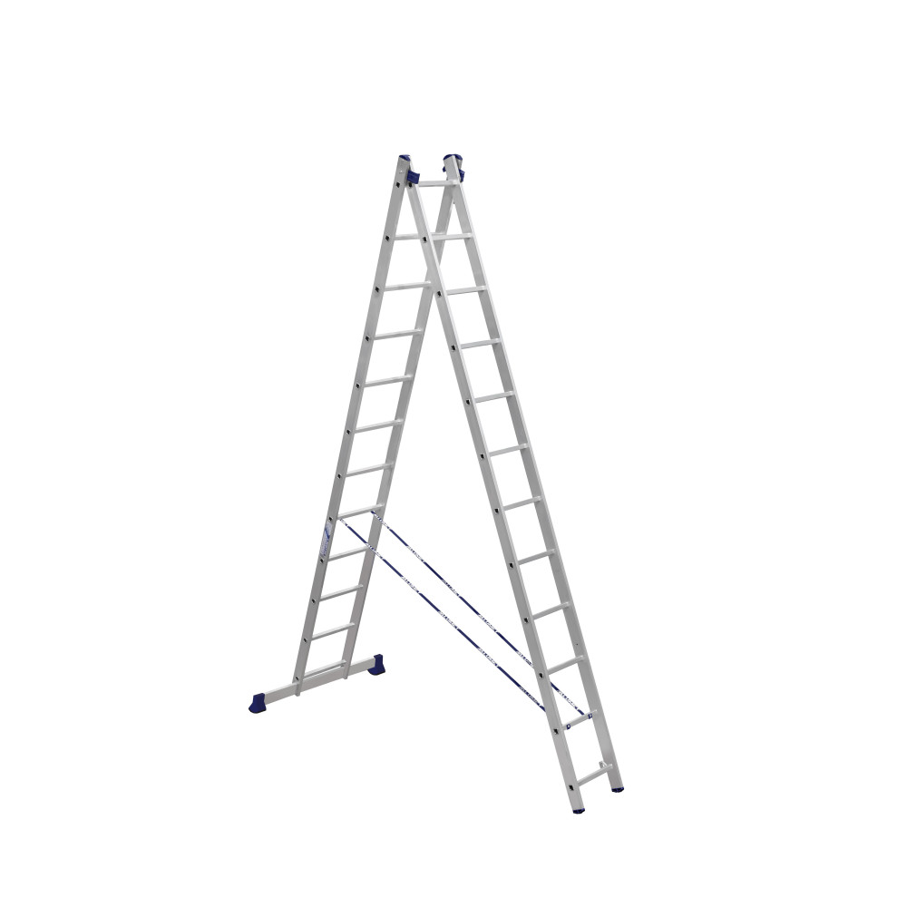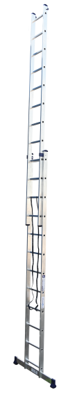 Универсальность лестницы заключается в том, что она может использоваться как раздвижная приставная лестница и как свободностоящая двухсторонняя стремянка.
