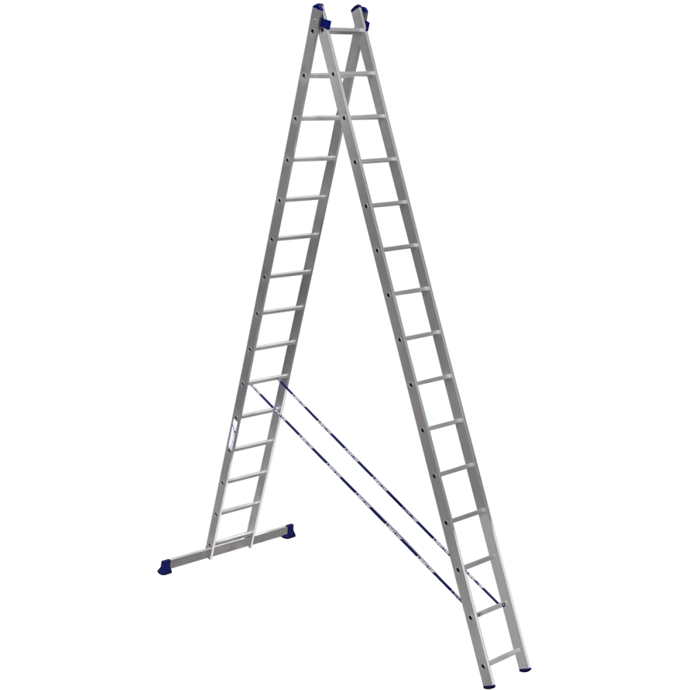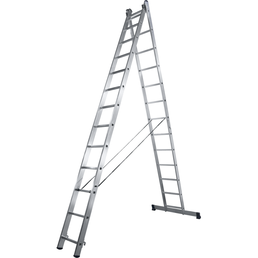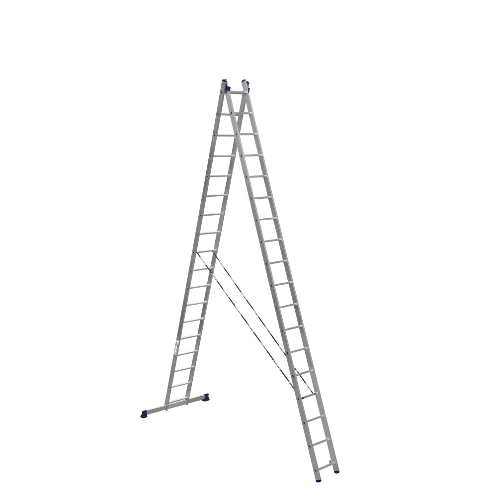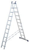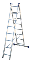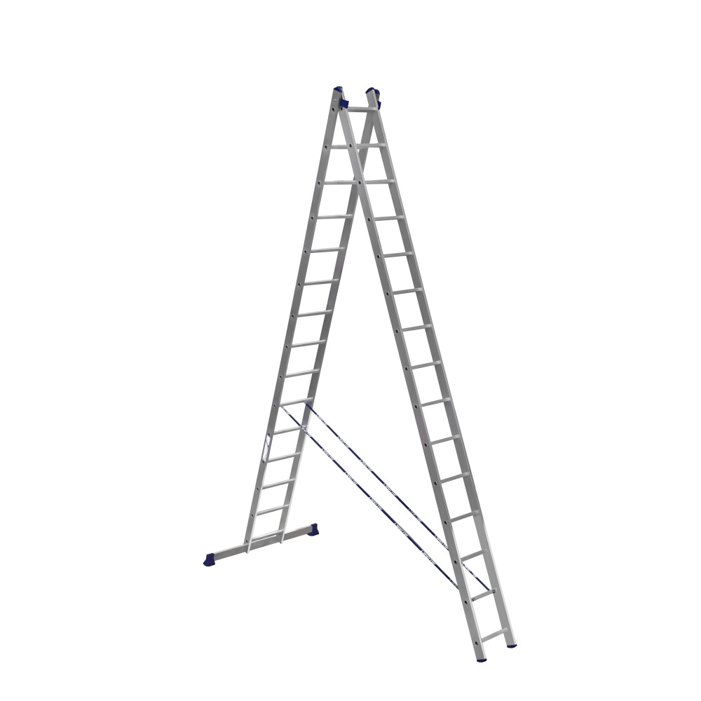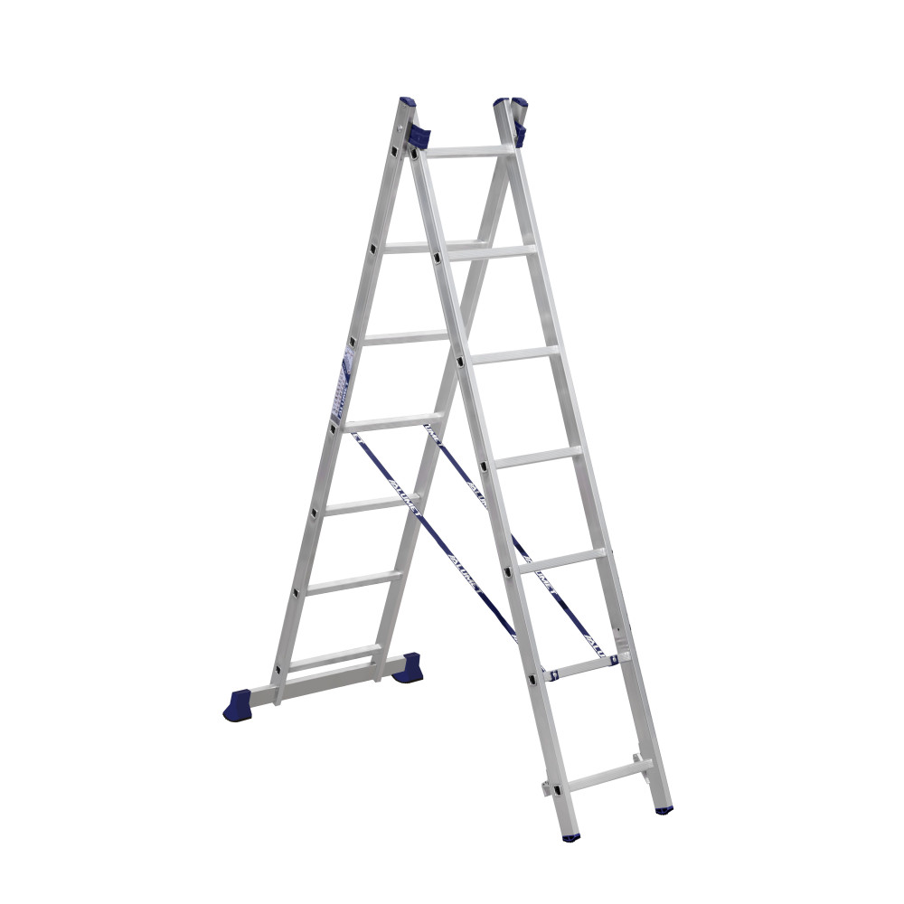 Универсальность лестницы заключается в том, что она может использоваться как раздвижная приставная лестница и как свободностоящая двухсторонняя стремянка.