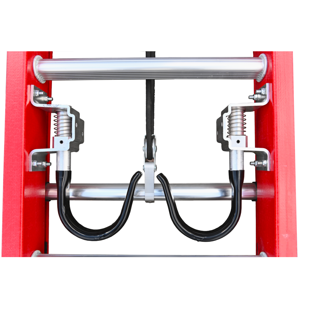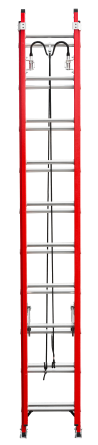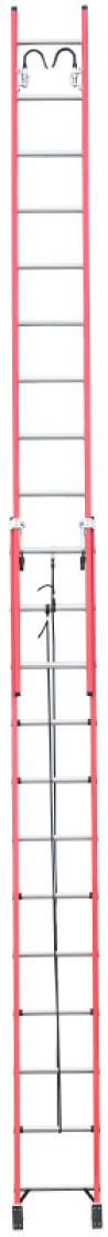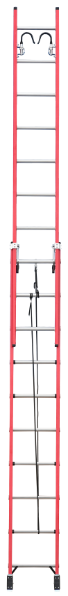 Стеклопластиковая приставная двухсекционная лестница с канатной тягой и крюками