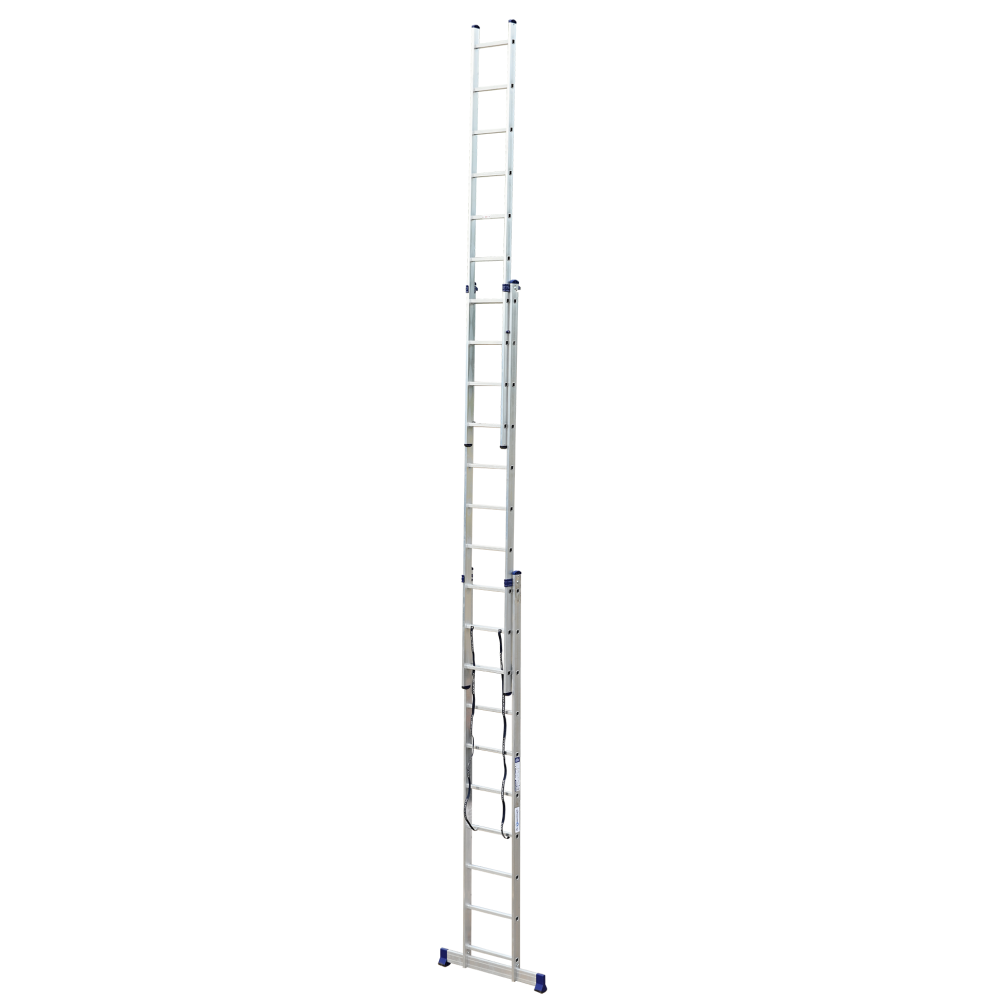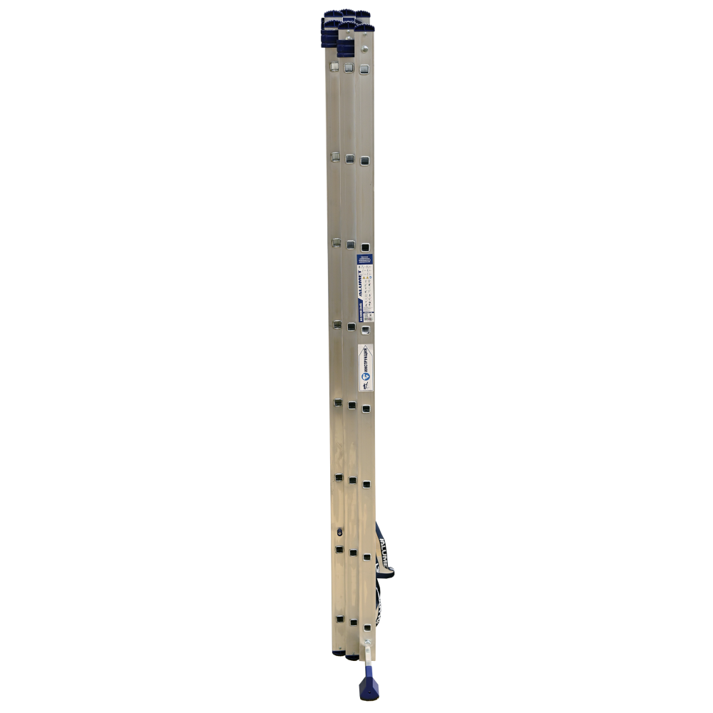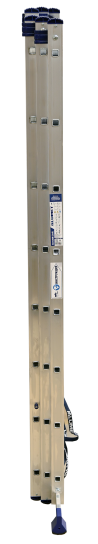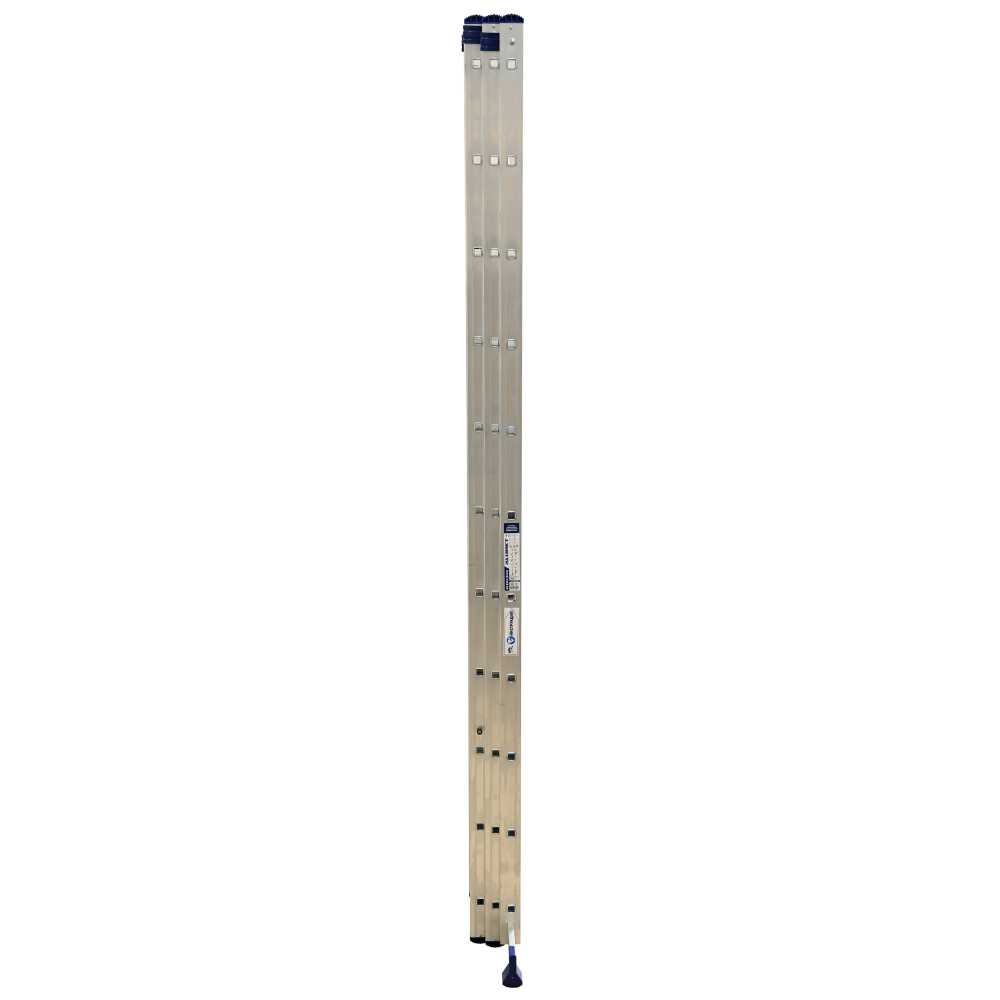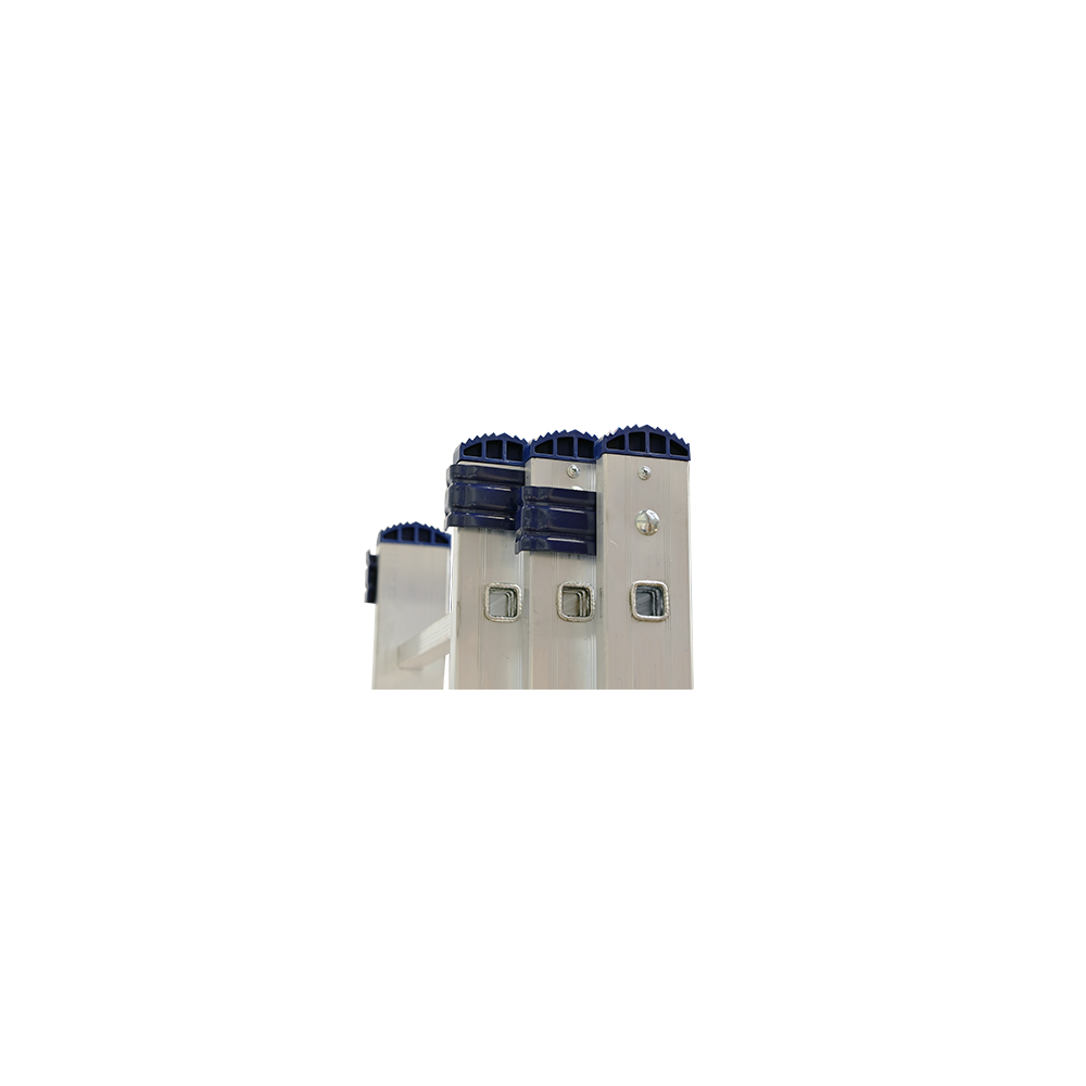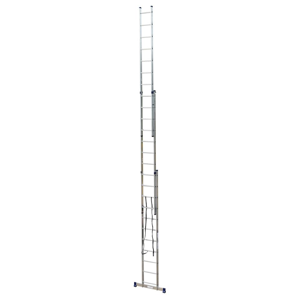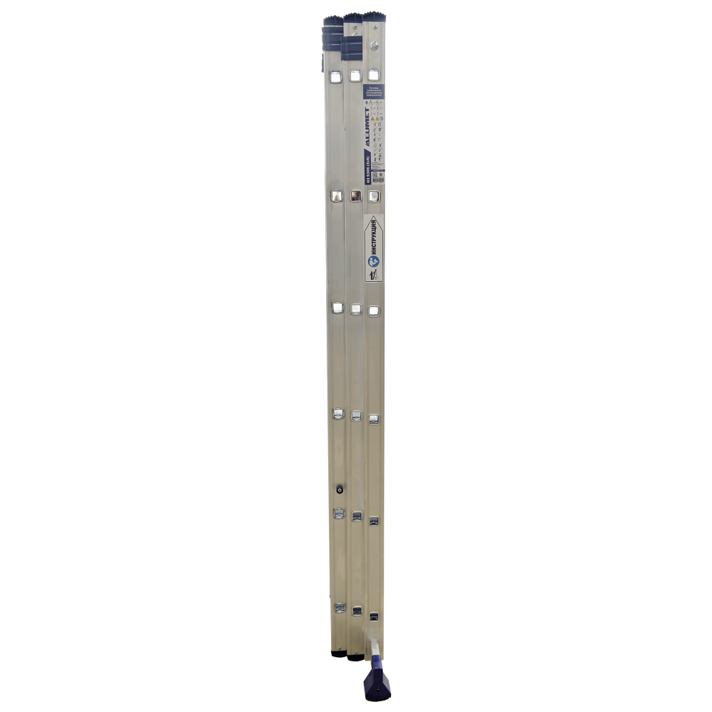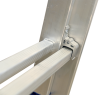 Универсальность данной лестницы заключается в том, что она может использоваться как раздвижная приставная лестница из трех частей и как свободностоящая стремянка (перевернутая русская буква «У»). Более того третья секция является съемной, и ею можно пользоваться отдельно как приставной лестницей, а оставшаяся часть при этом представляет двухсекционную универсальную лестницу. Эта лестница является по праву наиболее универсальной из всех лестниц, и несмотря на необходимый попарный перехлест секций как в конфигурации «приставная лестница» так и в конфигурации «стремянка», что усложняет, утяжеляет и поэтому удорожает ее, является самой популярной по продаваемости из-за своей исключительной универсальности.