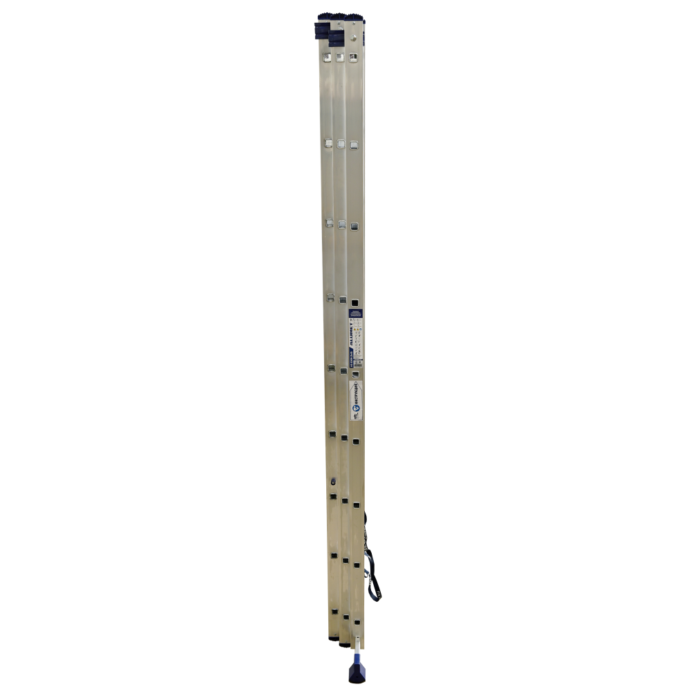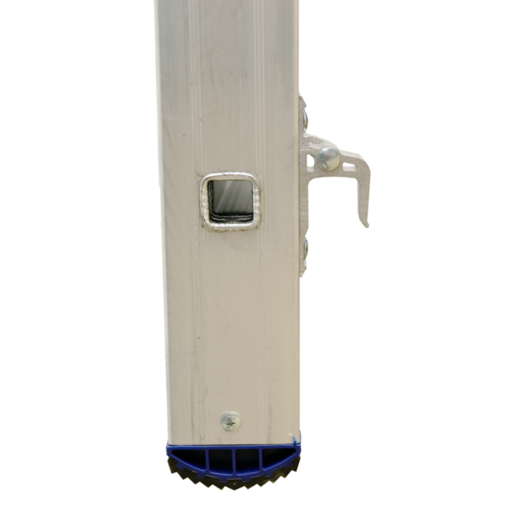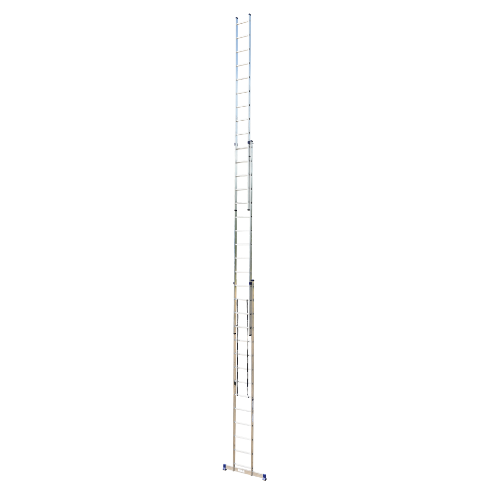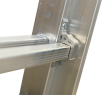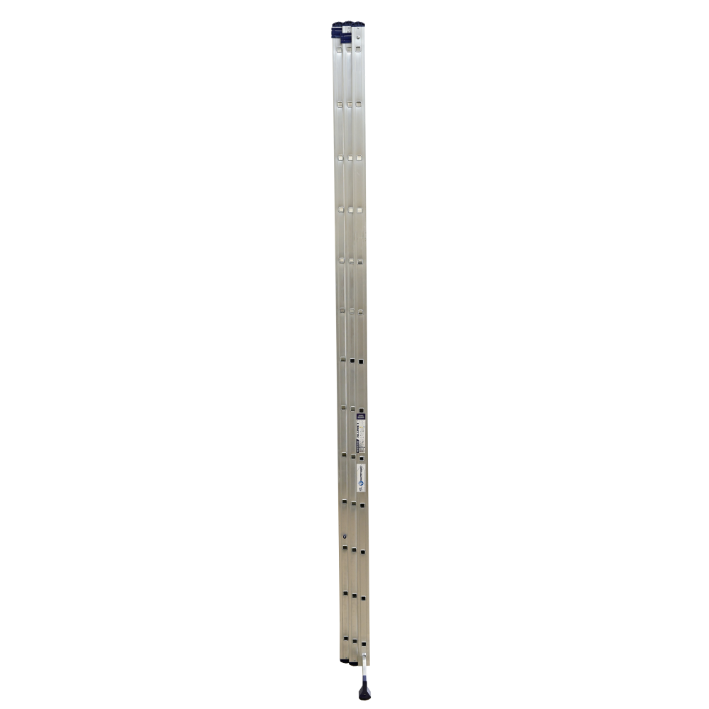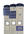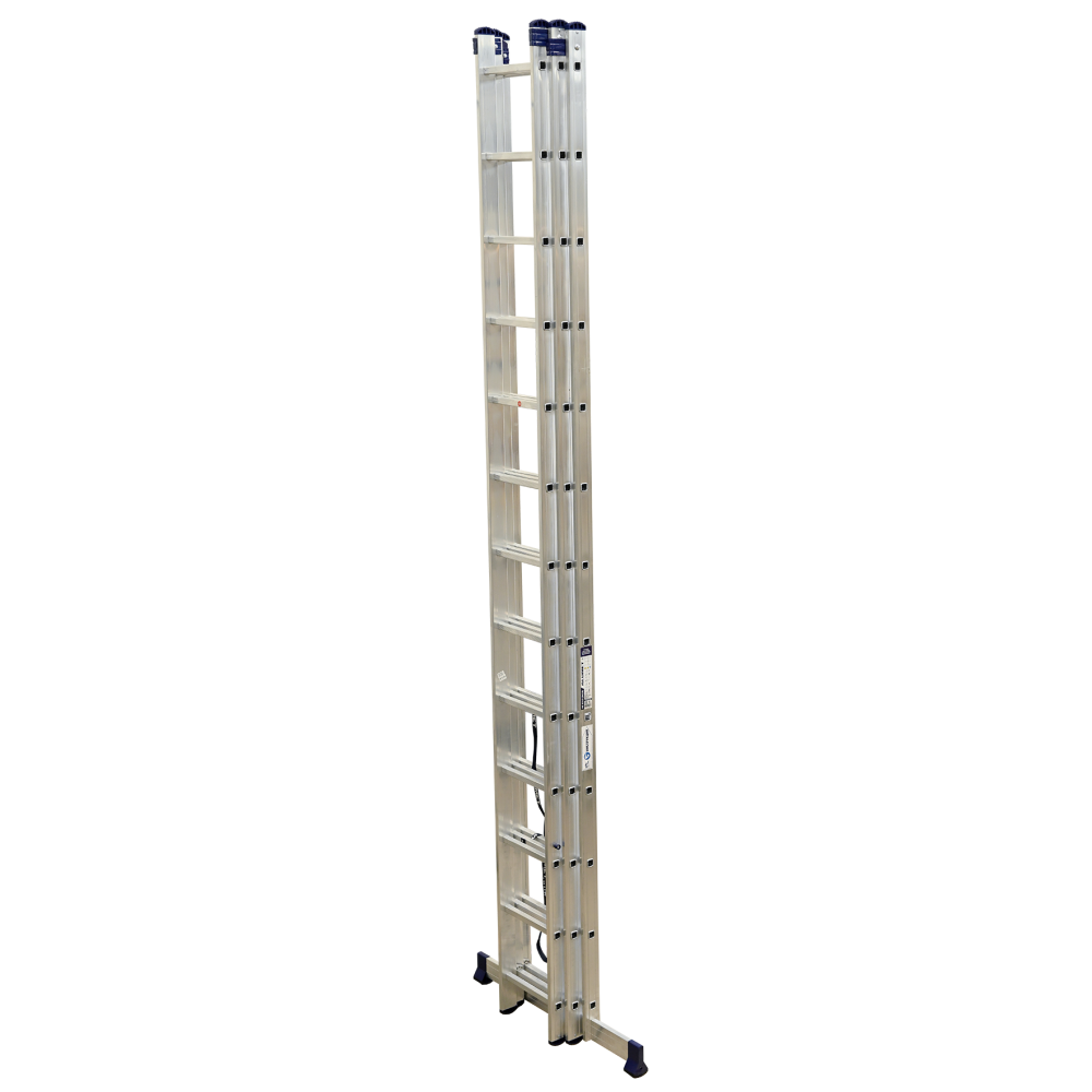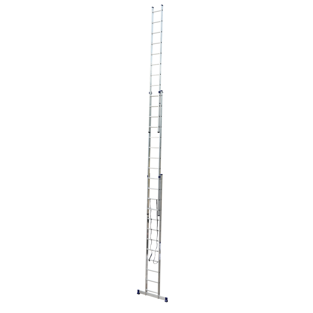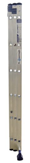 Универсальность данной лестницы заключается в том, что она может использоваться как раздвижная приставная лестница из трех частей и как свободностоящая стремянка (перевернутая русская буква «У»). Более того третья секция является съемной, и ею можно пользоваться отдельно как приставной лестницей, а оставшаяся часть при этом представляет двухсекционную универсальную лестницу. Эта лестница является по праву наиболее универсальной из всех лестниц, и несмотря на необходимый попарный перехлест секций как в конфигурации «приставная лестница» так и в конфигурации «стремянка», что усложняет, утяжеляет и поэтому удорожает ее, является самой популярной по продаваемости из-за своей исключительной универсальности.