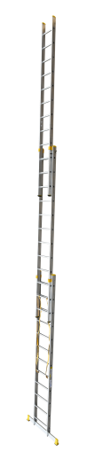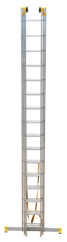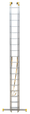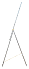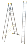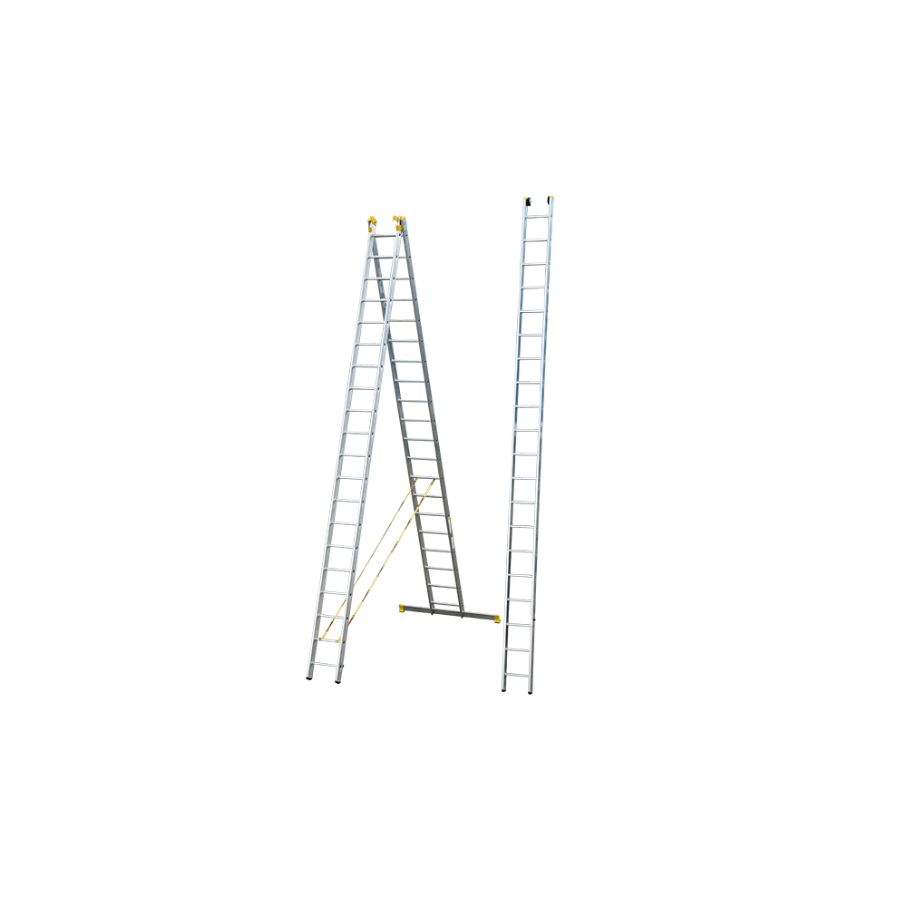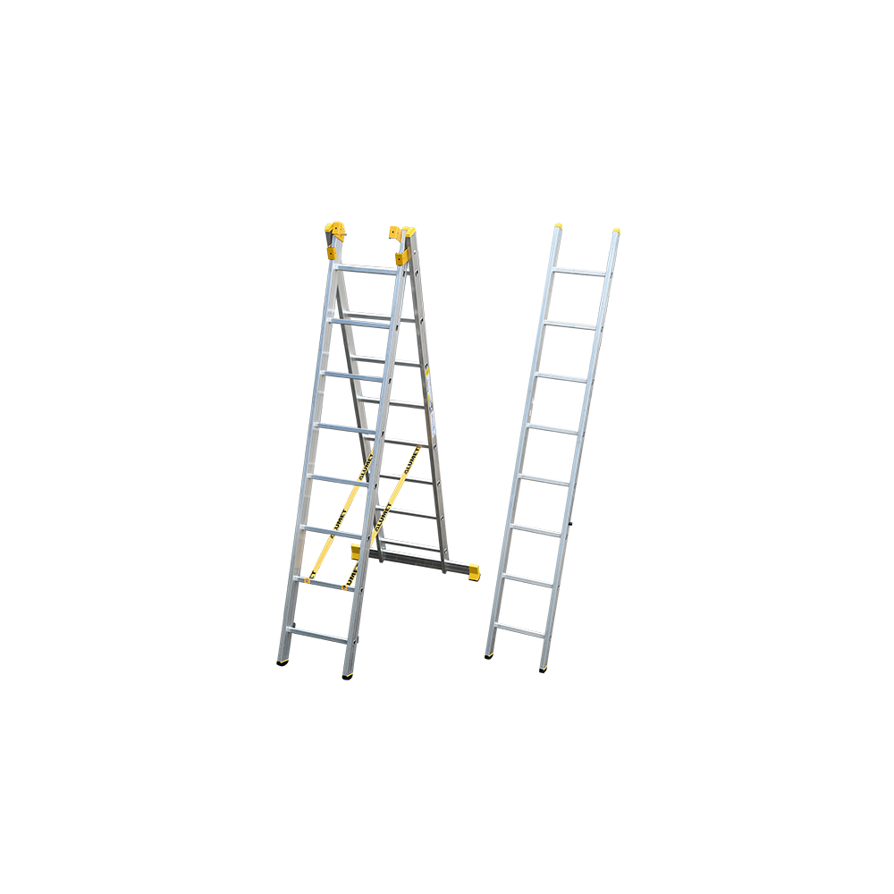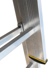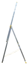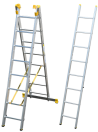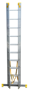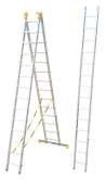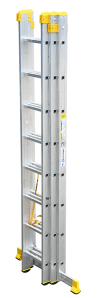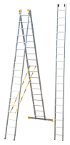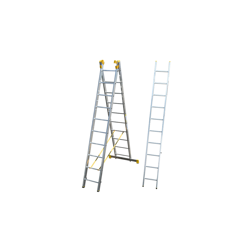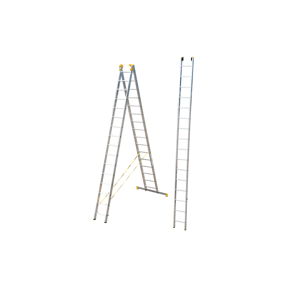 Универсальность данной лестницы заключается в том, что она может использоваться как раздвижная приставная лестница из трех частей и как свободностоящая стремянка (перевернутая русская буква «У»). Более того третья секция является съемной, и ею можно пользоваться отдельно как приставной лестницей, а оставшаяся часть при этом представляет двухсекционную универсальную лестницу. Эта лестница является по праву наиболее универсальной из всех лестниц, и несмотря на необходимый попарный перехлест секций как в положении «приставная лестница» так и в положении «стремянка», что усложняет, утяжеляет и поэтому удорожает ее, является самой популярной по продаваемости из-за своей исключительной универсальности.