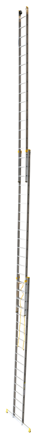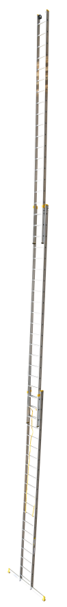 2. Часто не представляется возможным выдвинуть все три секции в приставное положение, держа лестницу под углом 65-75 градусов к объекту (например, когда необходимо поставить лестницу к краю крыши). Тогда лестница с необходимой длиной собирается на земле и ставится в рабочее положение с помощью дополнительных средств (лебедки, каната и пр.). Это процедура не быстрая, но необходимая для обеспечения безопасности основных и вспомогательных рабочих.