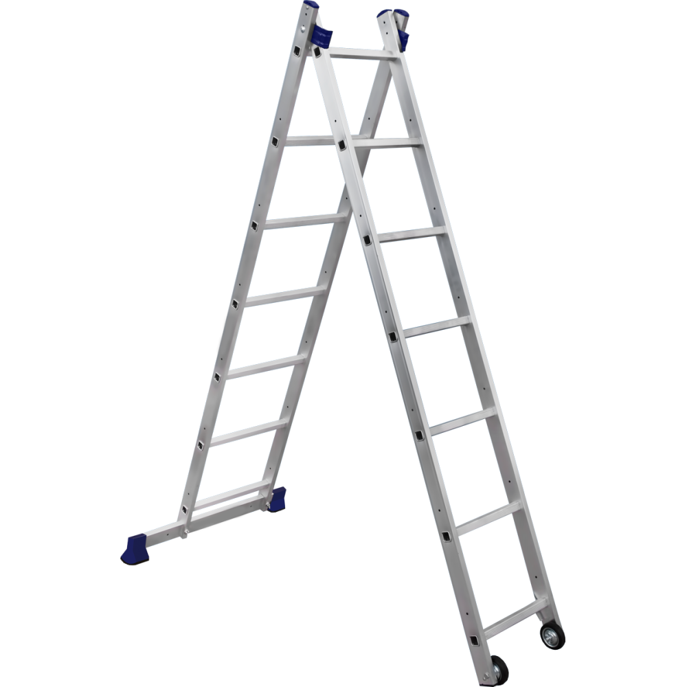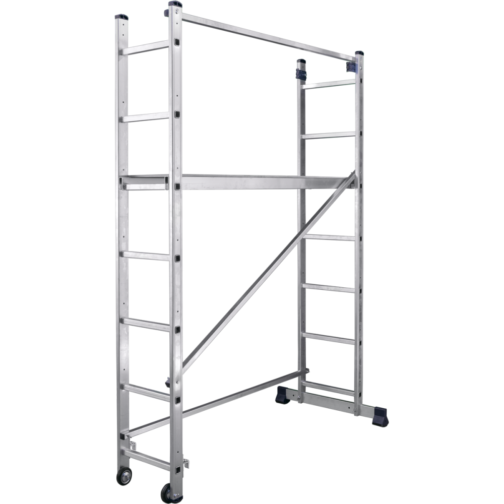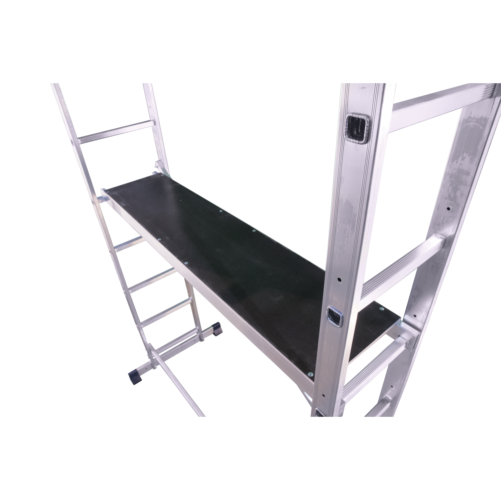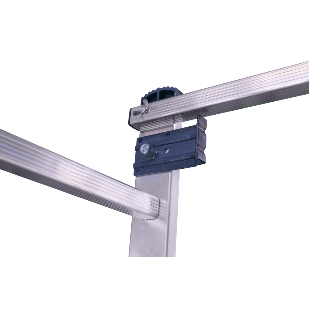 При использовании лестницы-помоста, в положении «приставная лестница», необходимая длина обеспечивается перехлестом секций и фиксируется зацепом. Шаг регулировки по высоте – 280мм. Оптимальный наклон лестницы должен составлять 65-750.