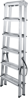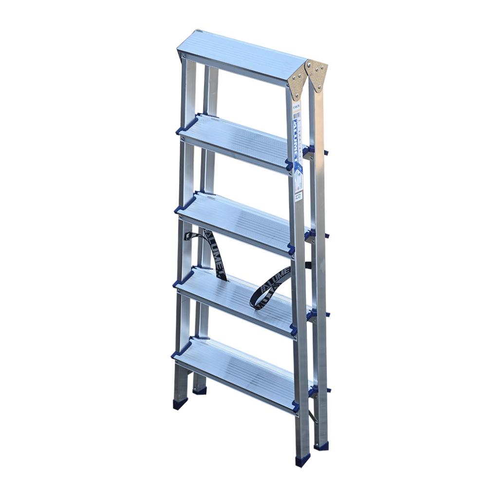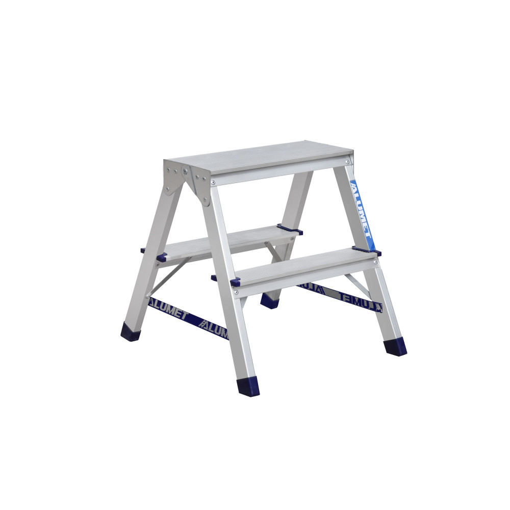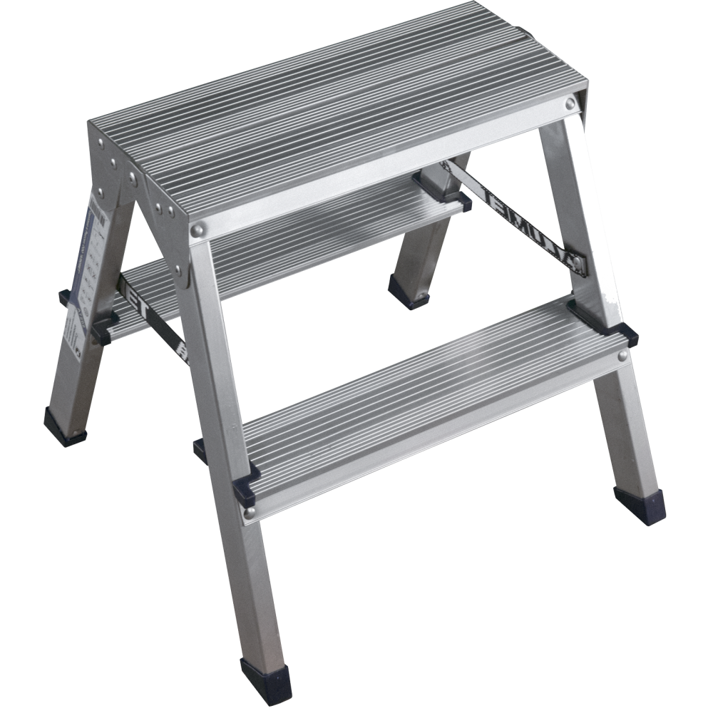 Двухсторонняя стремянка представляет собой свободностоящую переносную лестницу, сужающуюся к верху, имеющую две стороны подъема и раскладывающуюся для выполнения определённой задачи. Верхняя рабочая площадка образуется только в рабочем положении из двух верхних ступенек двух составных частей стремянки.