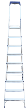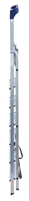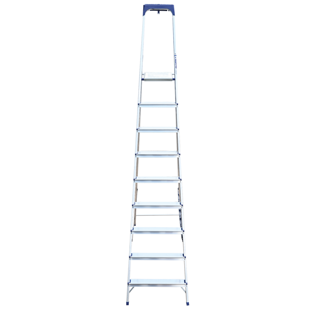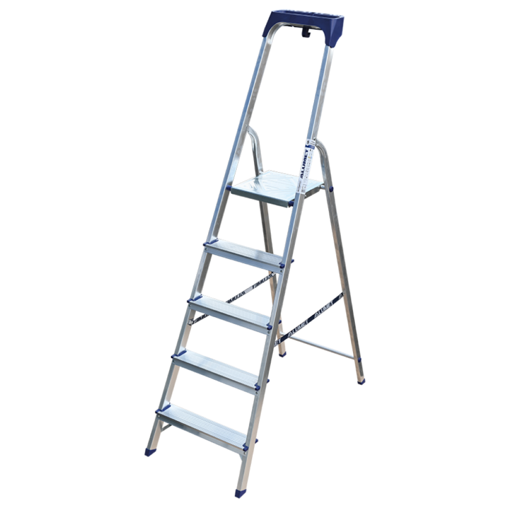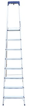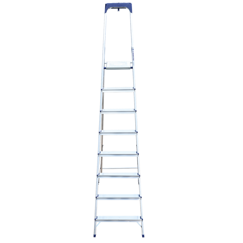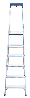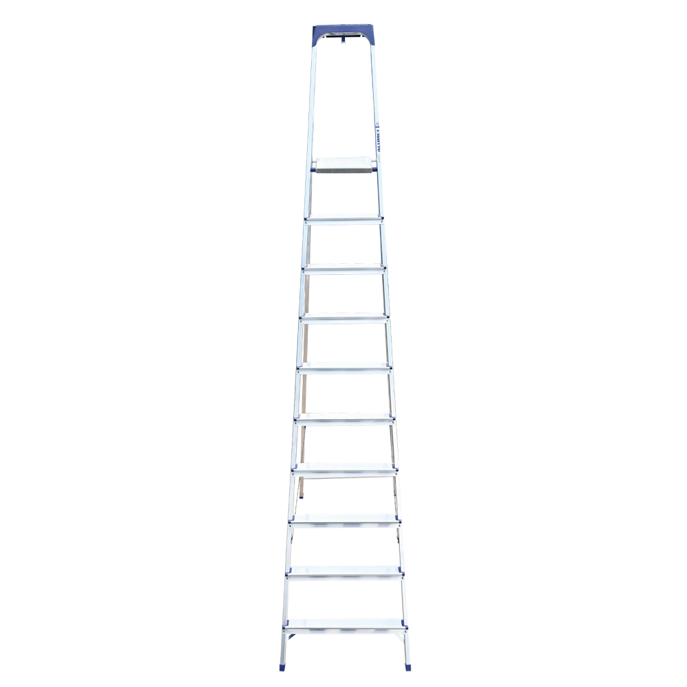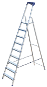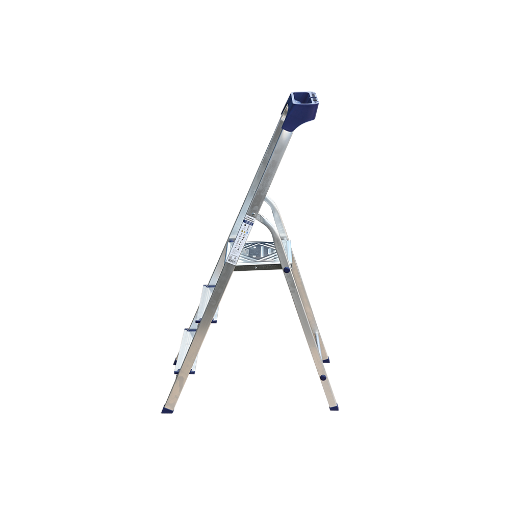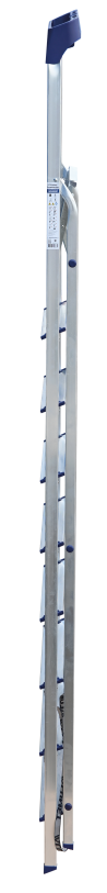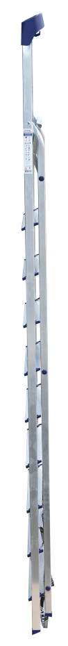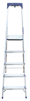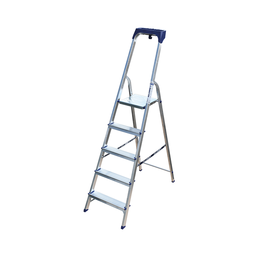Стремянка алюминиевая изготовлена из высокопрочного алюминиевого профиля. Задняя и передняя нога соединены между собой. Рабочая площадка выполнена из оцинкованной стали. Ступени имеют рифленую поверхность. Башмаки изготовлены из высокопрочного пластика. Стремянка в рабочем положении надежно фиксируется рабочей площадкой, а начиная с пятиступенчатой и выше страховочными ремнями. Количество ступеней от 3-х до 10-и. Стремянка алюминиевая серии АМ 7xxAK011 предназначена для проведения различных видов работ на высоте до 4 м как в быту, так и на производстве.