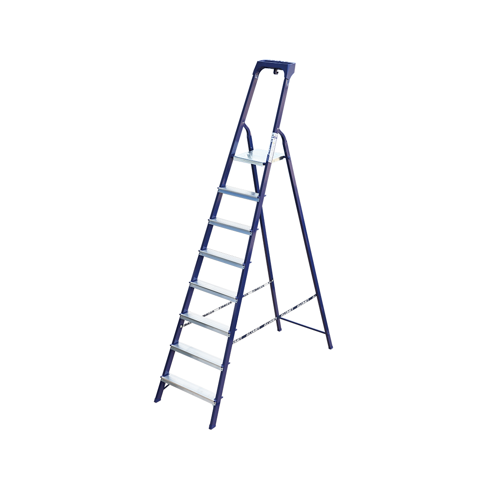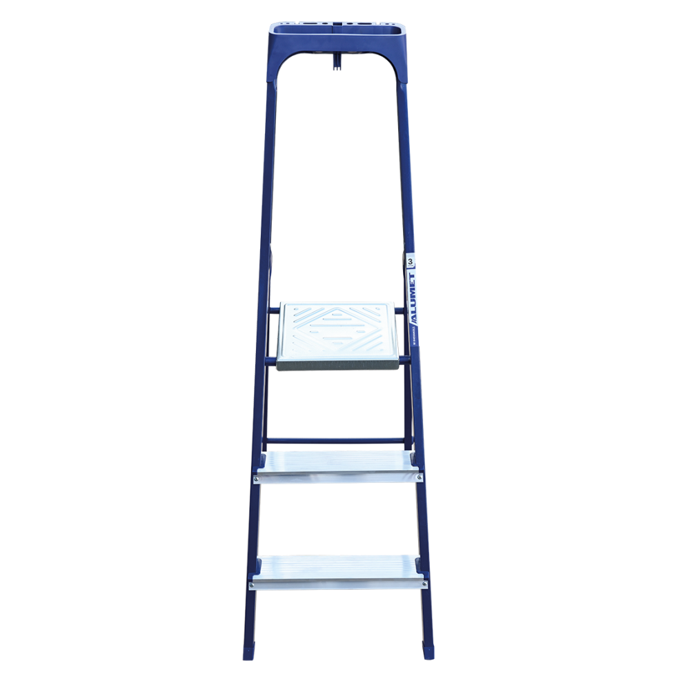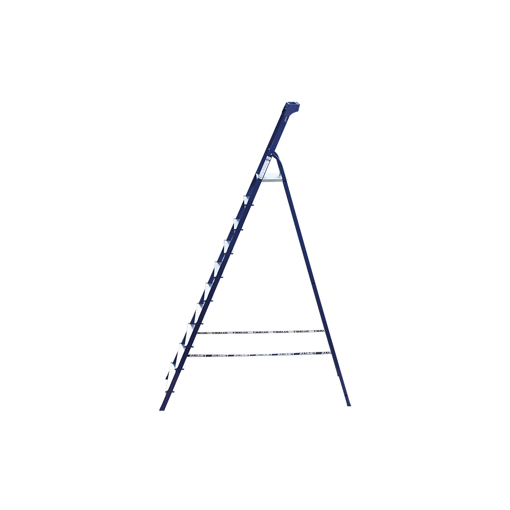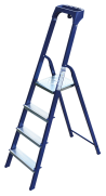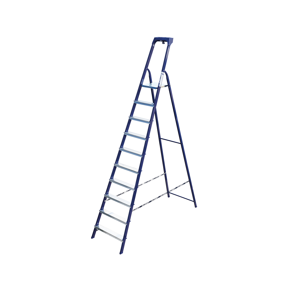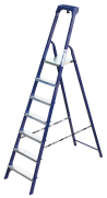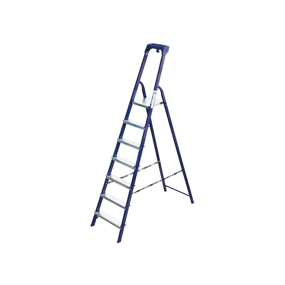 Тетивы стремянки стальной выполнены из прочного стального профиля, защищенного от коррозии эпоксидной порошковой эмалью. Задняя и передняя нога соединены между собой. Рабочая площадка выполнена из оцинкованной стали. Ступени имеют рифленую поверхность и изготовлены из высокопрочного алюминиевого профиля. Башмаки изготовлены из высокопрочного пластика. Стремянка в рабочем положении надежно фиксируется рабочей площадкой, а начиная с пятиступенчатой и выше. страховочными ремнями. Количество ступеней от 3-х до 10-и. Стремянка стальная серии М предназначена для проведения различных видов работ на высоте до 4 м как в быту, так и на производстве.