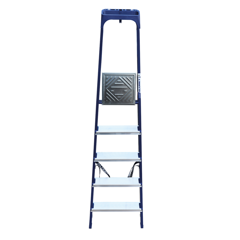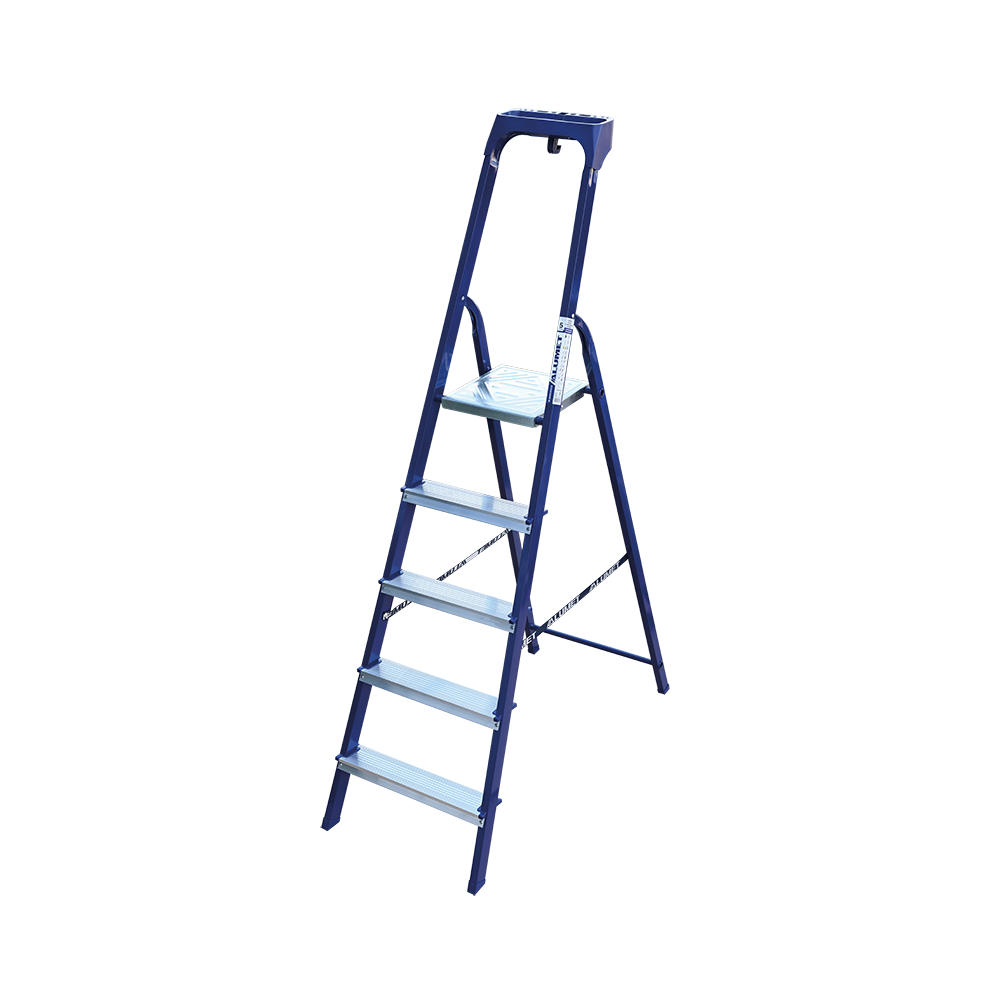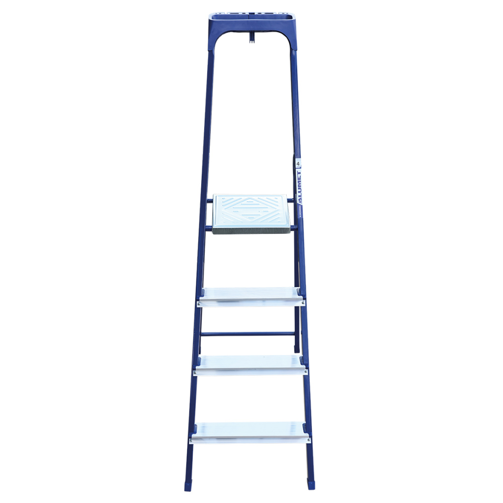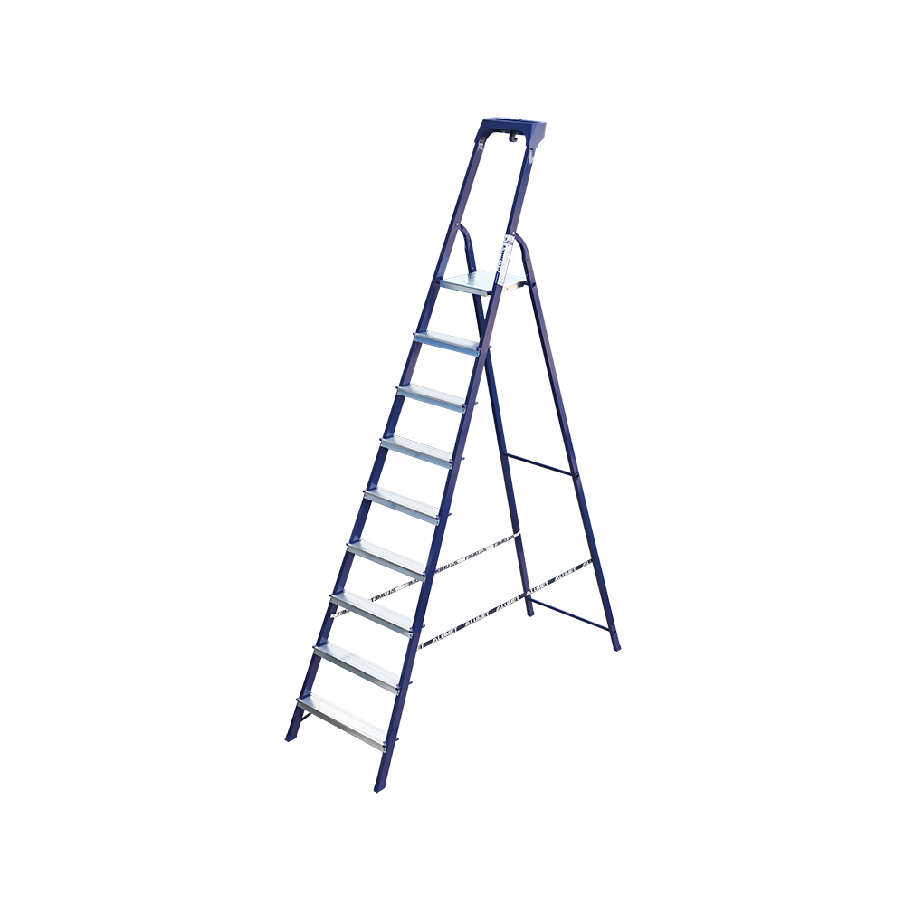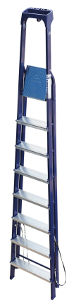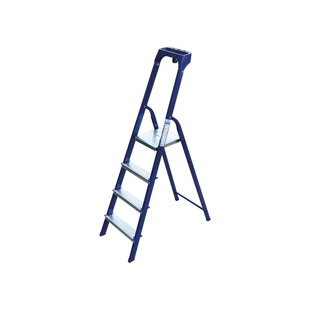 Тетивы стремянки стальной выполнены из прочного стального профиля, защищенного от коррозии эпоксидной порошковой эмалью. Задняя и передняя нога соединены между собой. Рабочая площадка выполнена из оцинкованной стали. Ступени имеют рифленую поверхность и изготовлены из высокопрочного алюминиевого профиля. Башмаки изготовлены из высокопрочного пластика. Стремянка в рабочем положении надежно фиксируется рабочей площадкой, а начиная с пятиступенчатой и выше. страховочными ремнями. Количество ступеней от 3-х до 10-и. Стремянка стальная серии М предназначена для проведения различных видов работ на высоте до 4 м как в быту, так и на производстве.