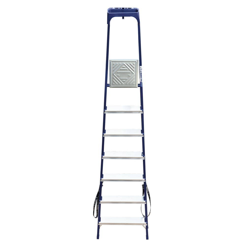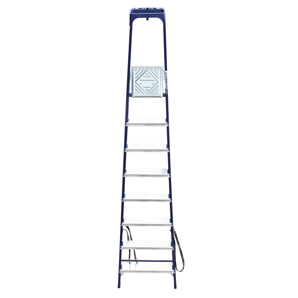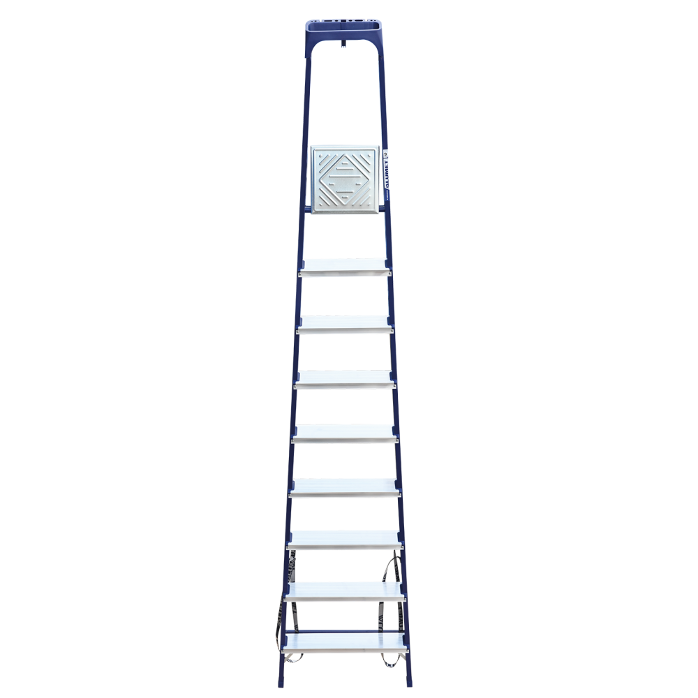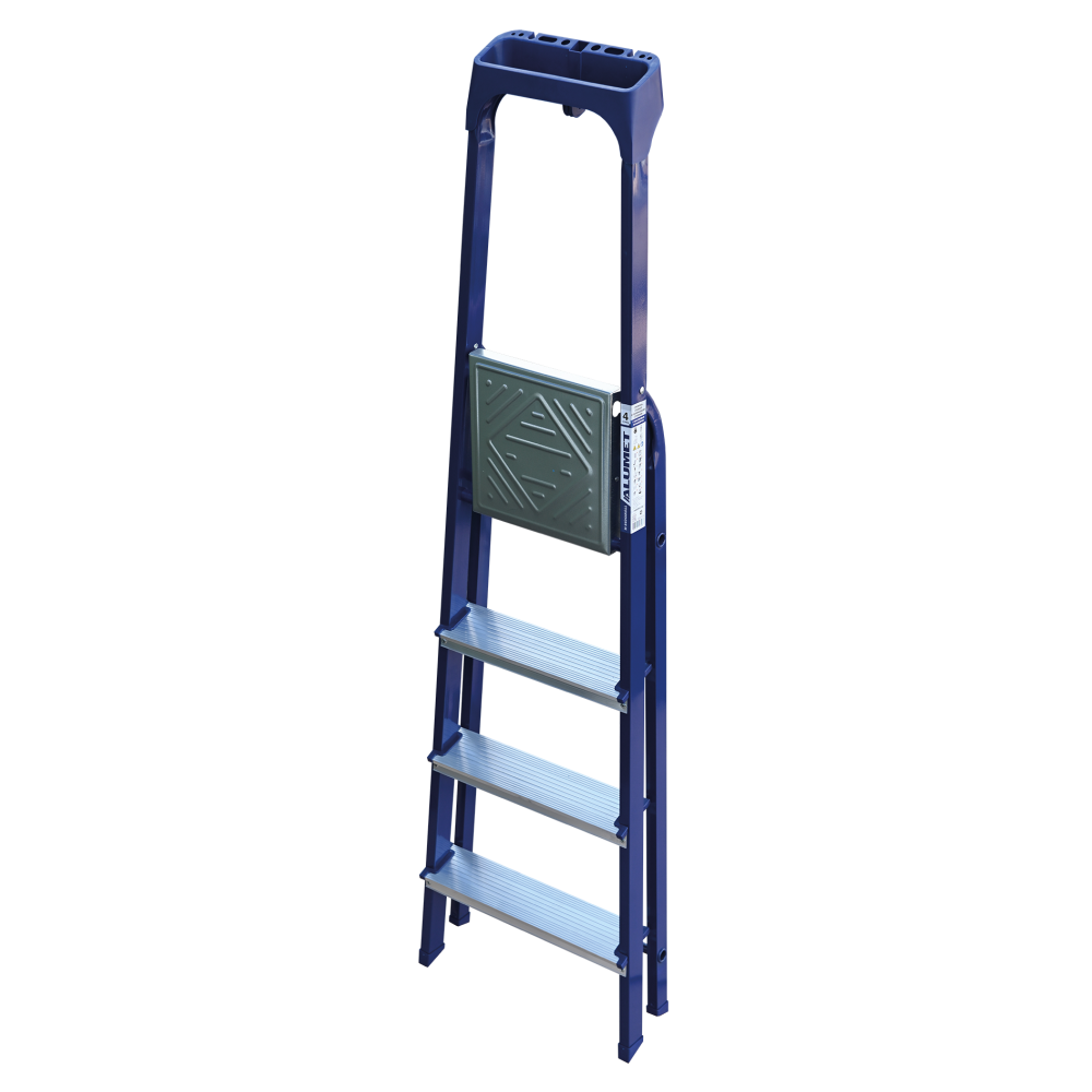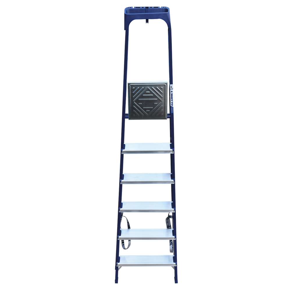 Тетивы стремянки стальной выполнены из прочного стального профиля, защищенного от коррозии эпоксидной порошковой эмалью. Задняя и передняя нога соединены между собой. Рабочая площадка выполнена из оцинкованной стали. Ступени имеют рифленую поверхность и изготовлены из высокопрочного алюминиевого профиля. Башмаки изготовлены из высокопрочного пластика. Стремянка в рабочем положении надежно фиксируется рабочей площадкой, а начиная с пятиступенчатой и выше. страховочными ремнями. Количество ступеней от 3-х до 10-и. Стремянка стальная серии М предназначена для проведения различных видов работ на высоте до 4 м как в быту, так и на производстве.