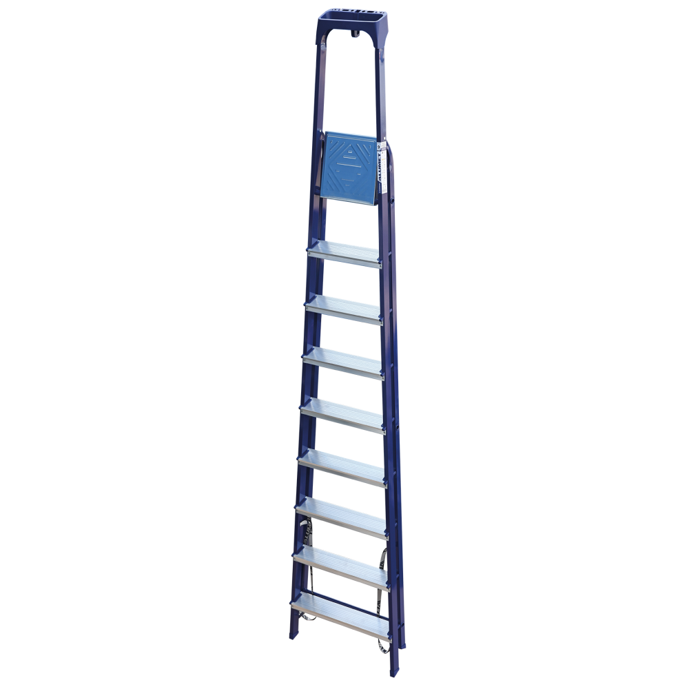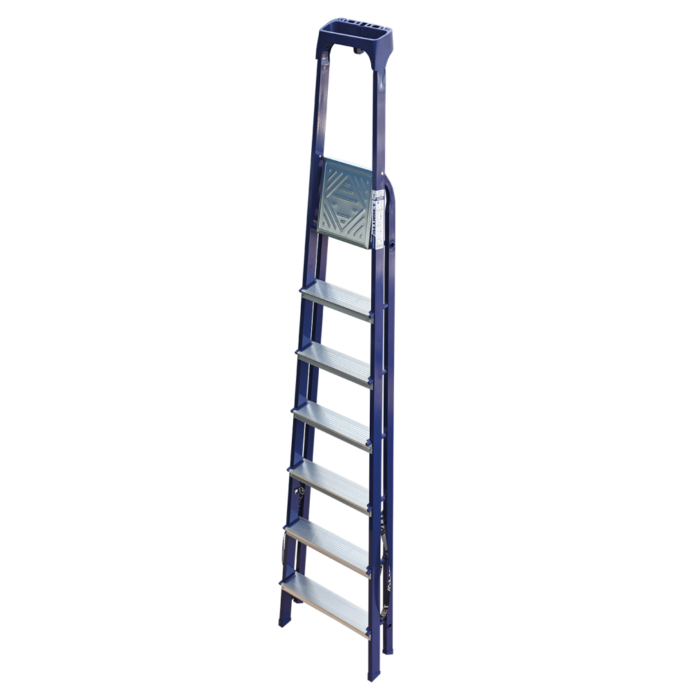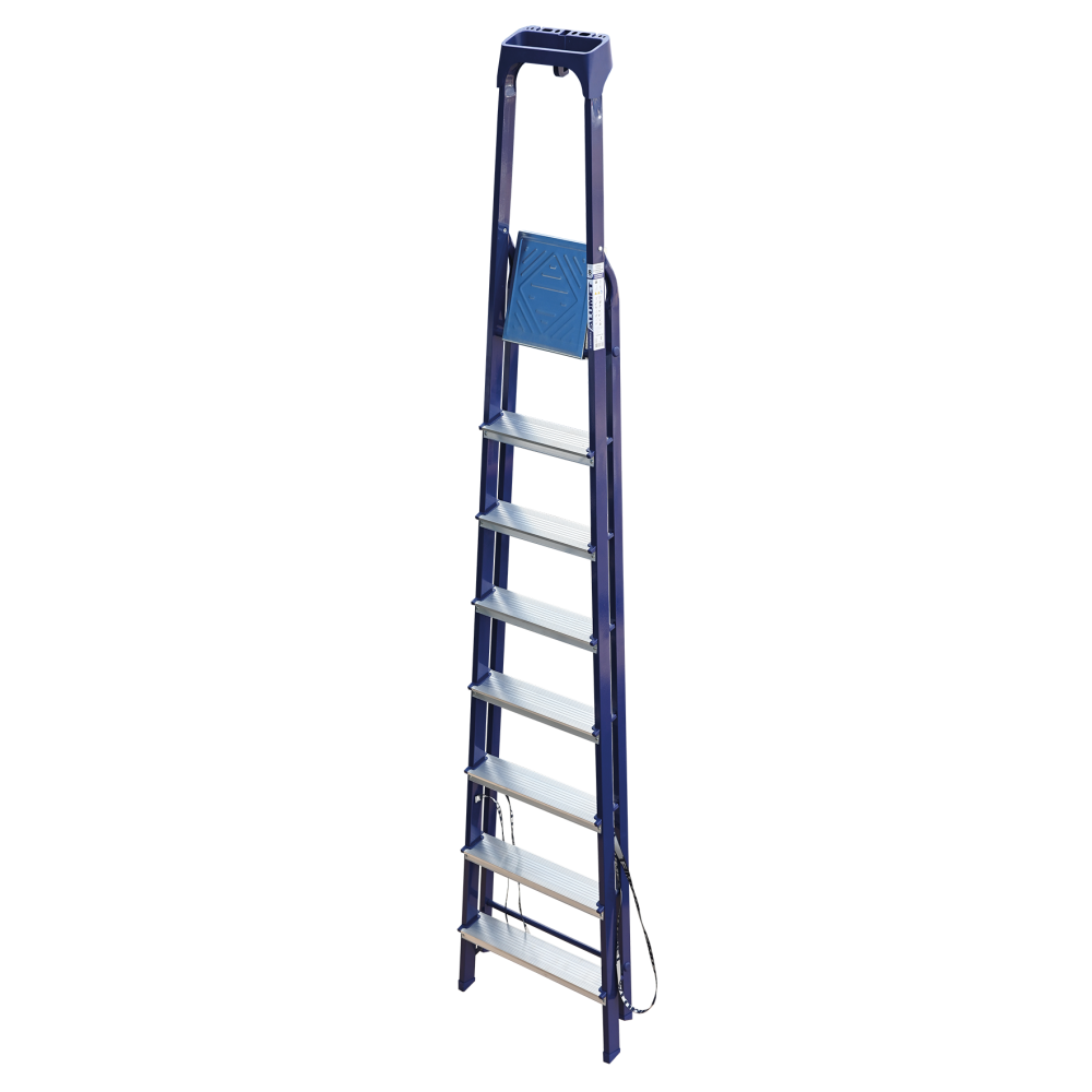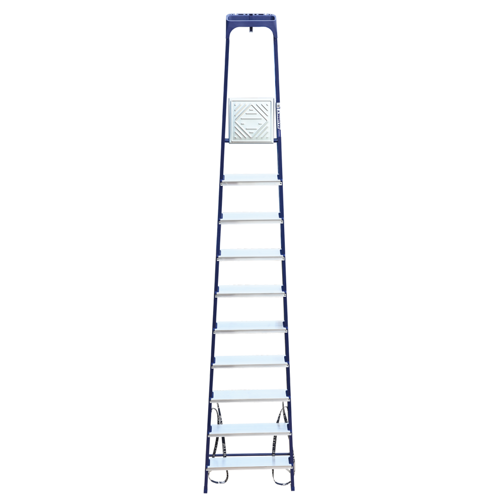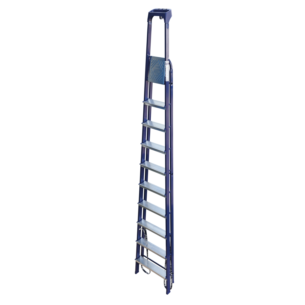 Тетивы стремянки стальной выполнены из прочного стального профиля, защищенного от коррозии эпоксидной порошковой эмалью. Задняя и передняя нога соединены между собой. Рабочая площадка выполнена из оцинкованной стали. Ступени имеют рифленую поверхность и изготовлены из высокопрочного алюминиевого профиля. Башмаки изготовлены из высокопрочного пластика. Стремянка в рабочем положении надежно фиксируется рабочей площадкой, а начиная с пятиступенчатой и выше. страховочными ремнями. Количество ступеней от 3-х до 10-и. Стремянка стальная серии М предназначена для проведения различных видов работ на высоте до 4 м как в быту, так и на производстве.