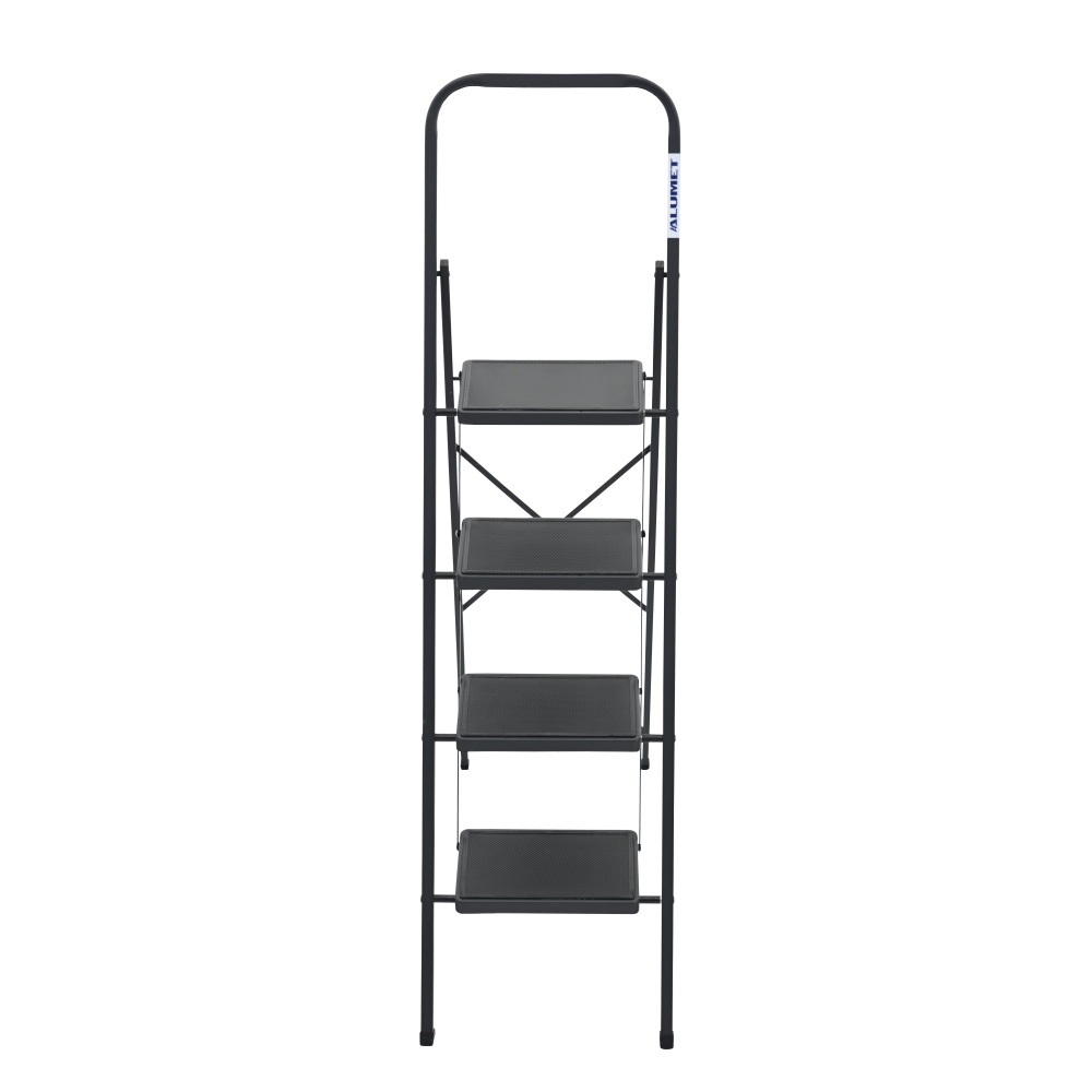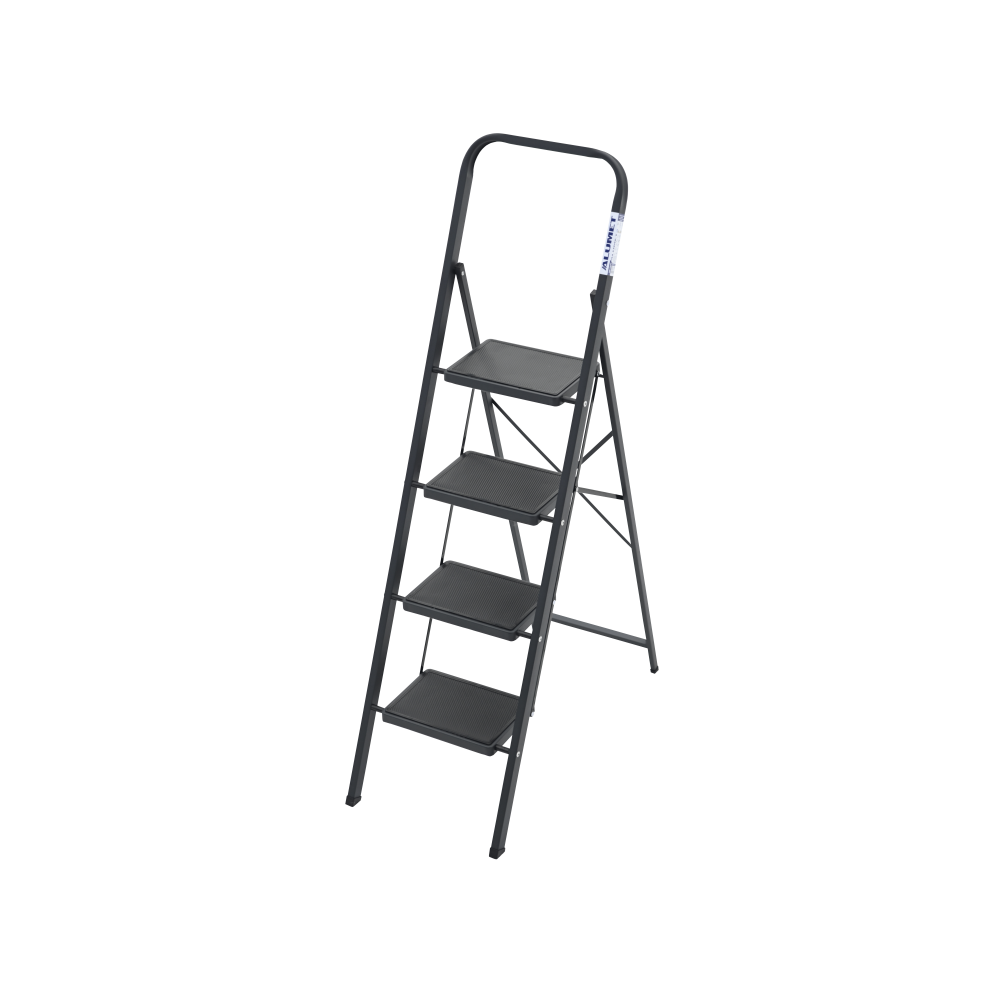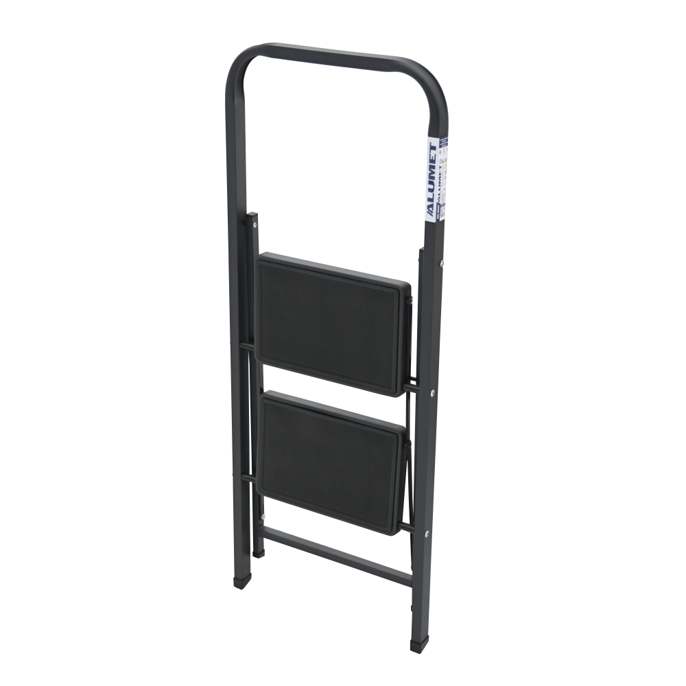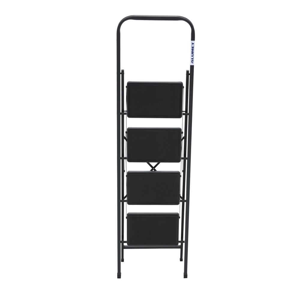 Тетива передней ноги, задняя нога и ступени выполнены из стального профиля, защищенного от коррозии порошковой краской. Задняя и передняя ноги соединены между собой. Ступени имеют рифленую поверхность (стремянки серии МК С – имеют противоскользящие накладки). Башмаки изготовлены из высокопрочного пластика. Стремянка в рабочем положении должна быть полностью раскрыта, верхняя ступень плотно лежать на трубке задней ноги.