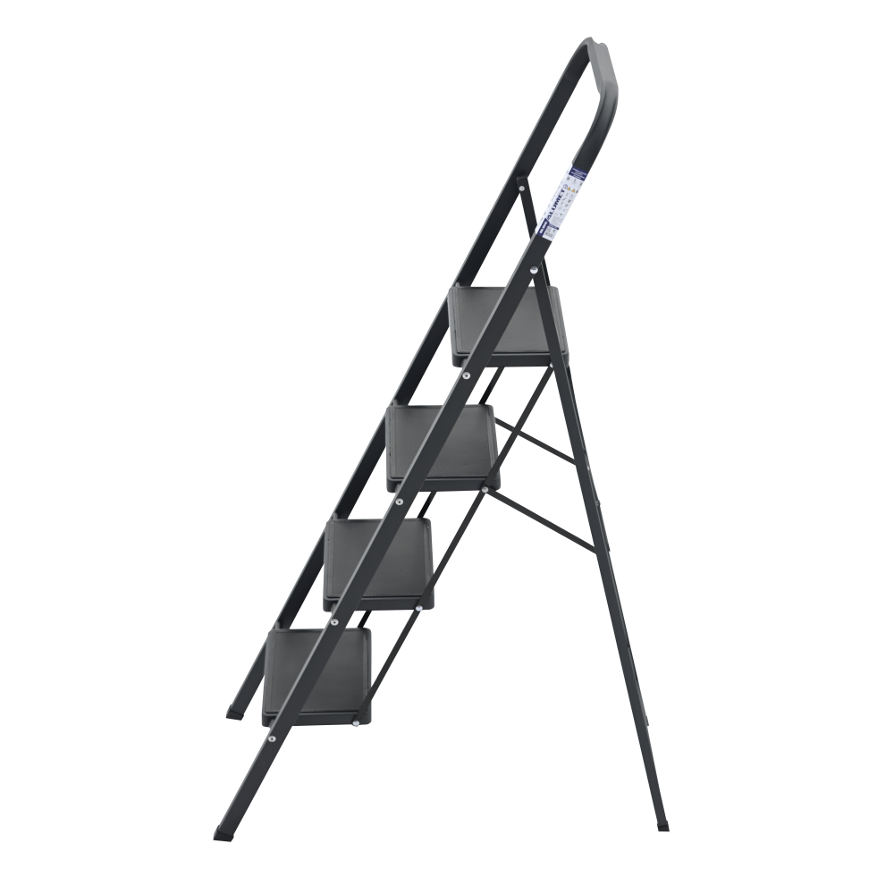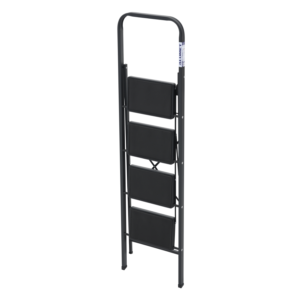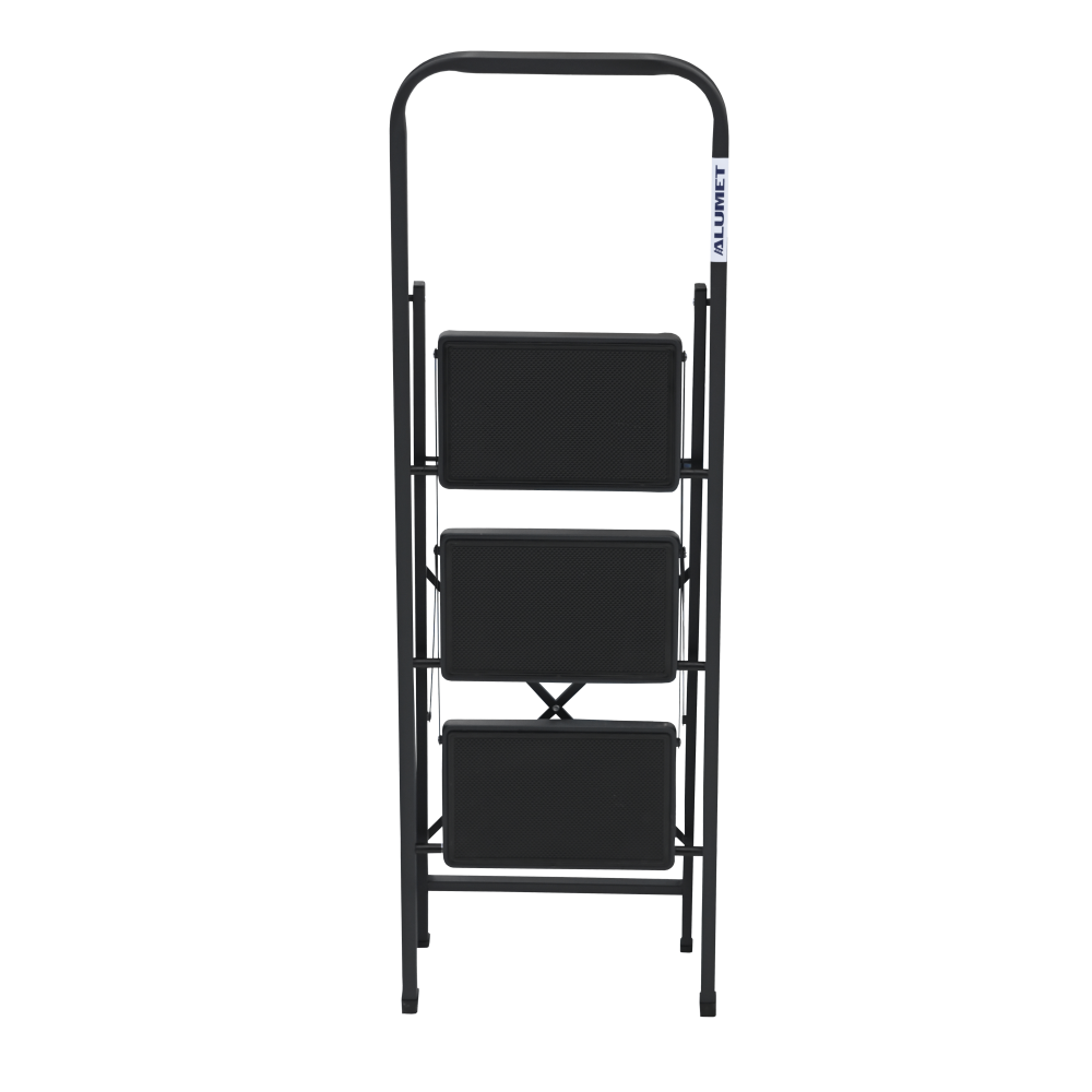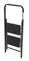 Тетива передней ноги, задняя нога и ступени выполнены из стального профиля, защищенного от коррозии порошковой краской. Задняя и передняя ноги соединены между собой. Ступени имеют рифленую поверхность (стремянки серии МК С – имеют противоскользящие накладки). Башмаки изготовлены из высокопрочного пластика. Стремянка в рабочем положении должна быть полностью раскрыта, верхняя ступень плотно лежать на трубке задней ноги.