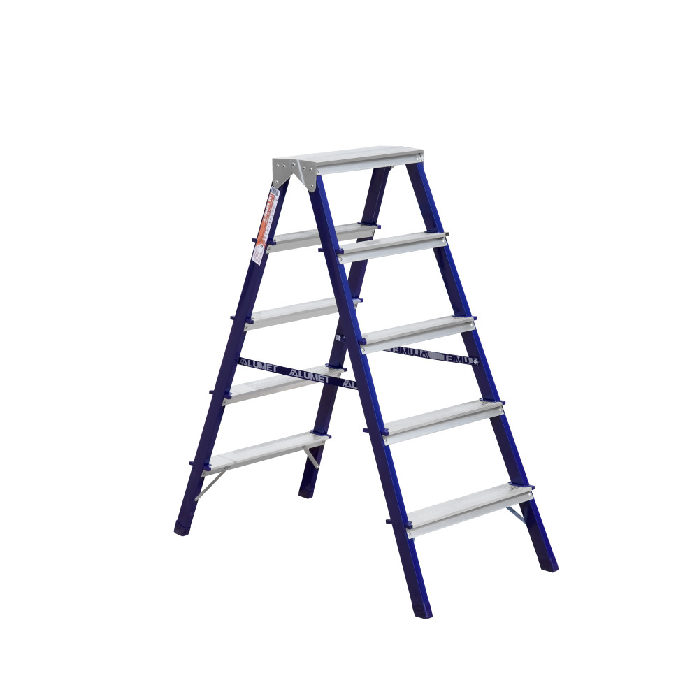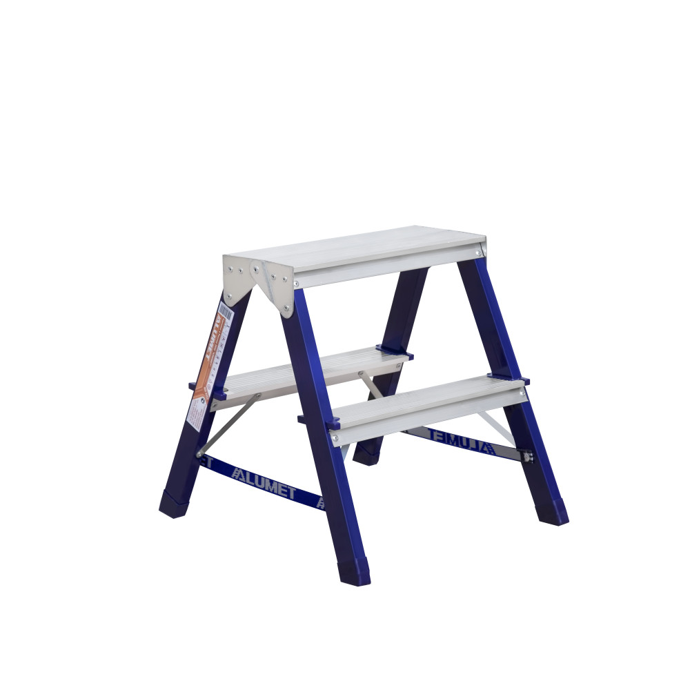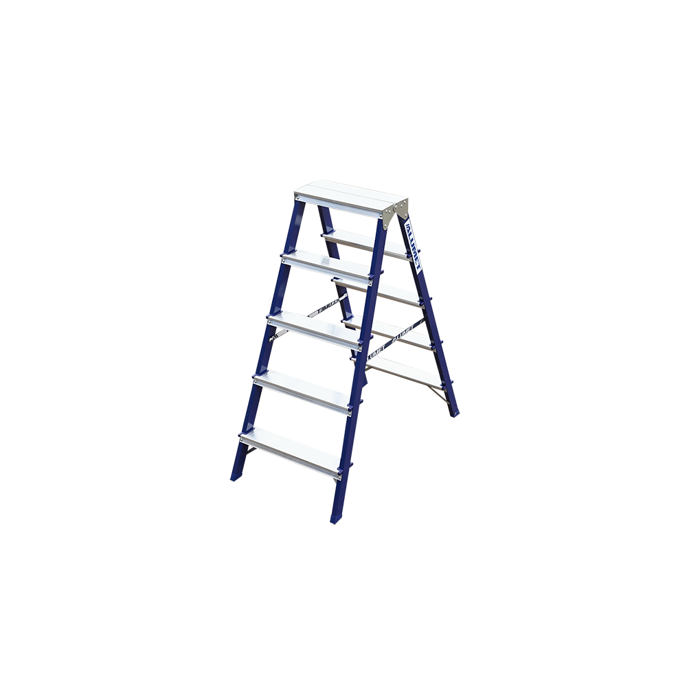 Двухсторонняя стремянка представляет собой свободностоящую переносную лестницу, сужающуюся к верху, имеющую две стороны подъема и раскладывающуюся для выполнения определённой задачи. Верхняя рабочая площадка образуется только в рабочем положении из двух верхних ступенек двух составных частей стремянки.