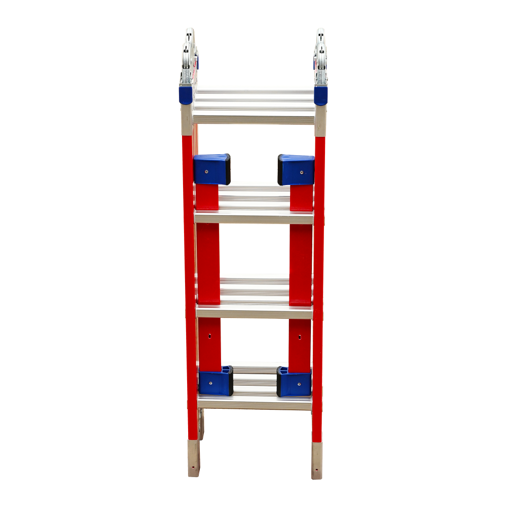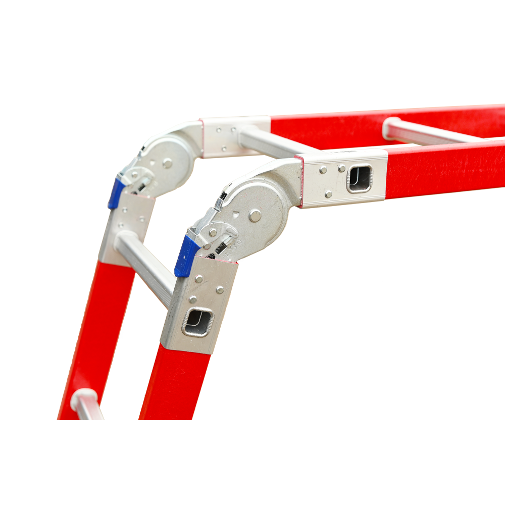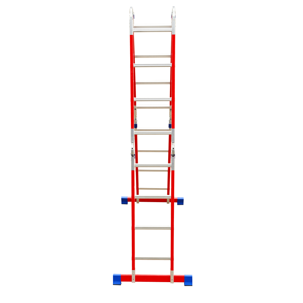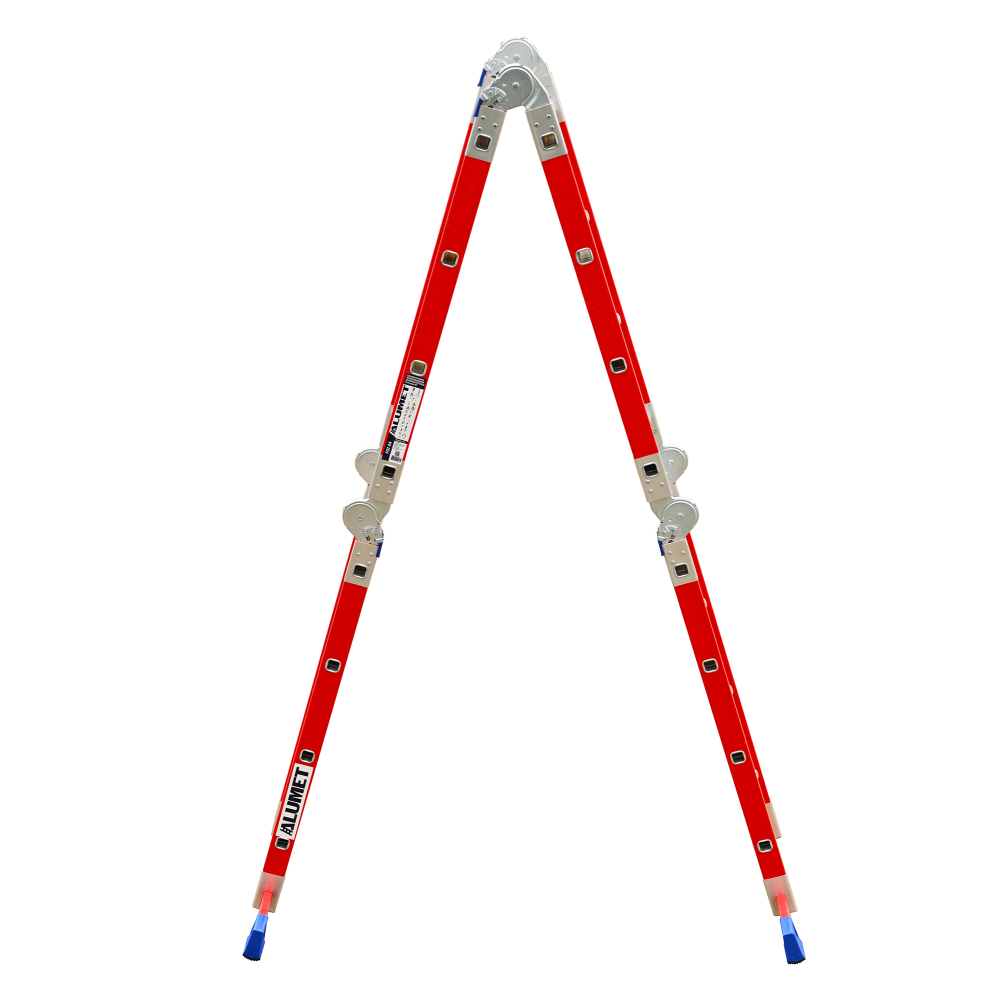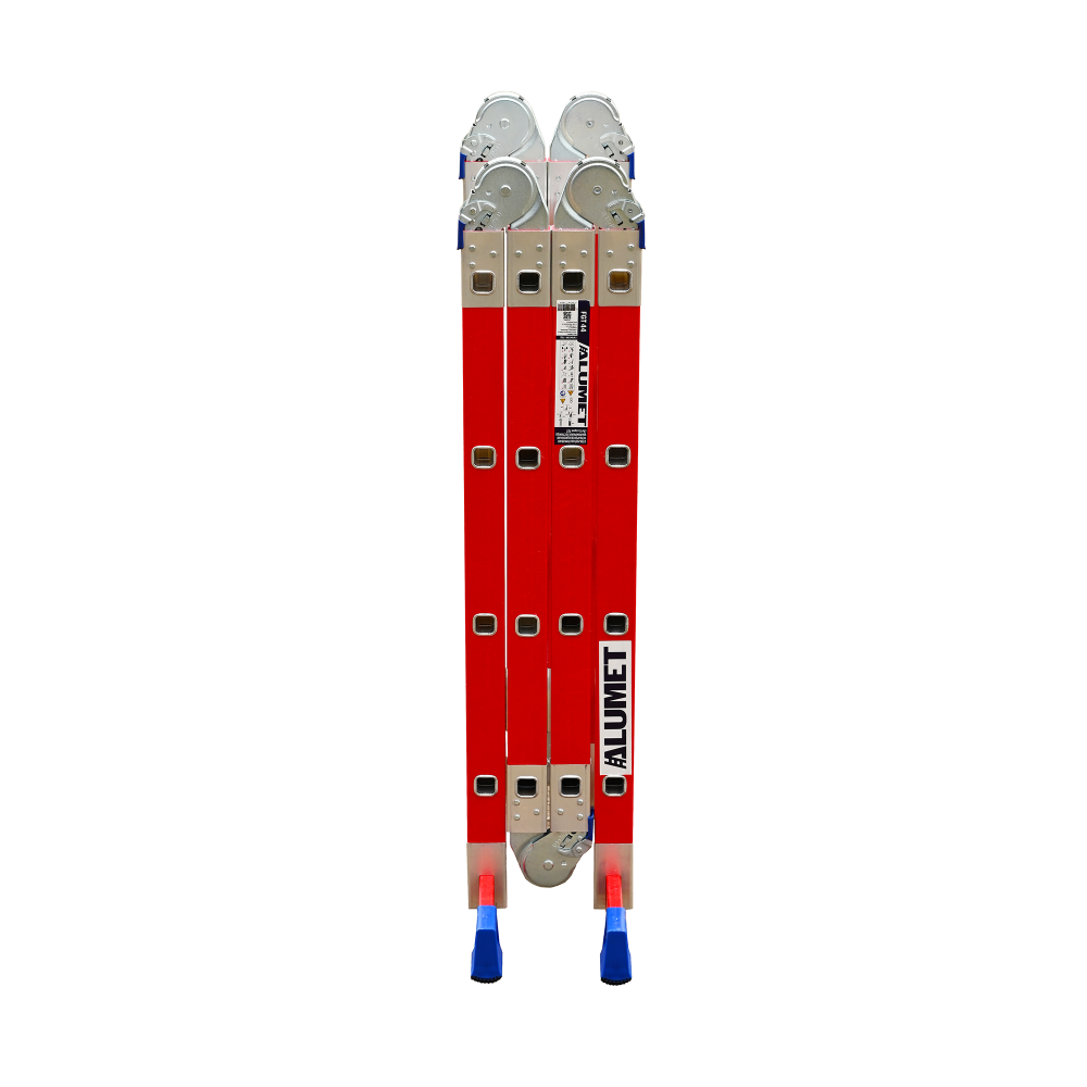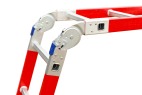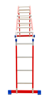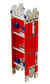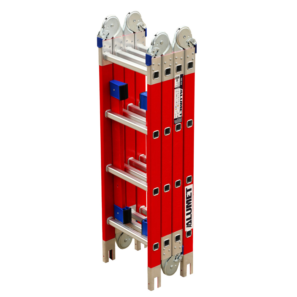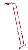 Лестница состоит из четырех секций, соединенных между собой стальными лестничными шарнирами с углами фиксации 35, 105 и 180 градусов. Поэтому такая лестница может принимать различные формы, такие как на рисунке.