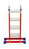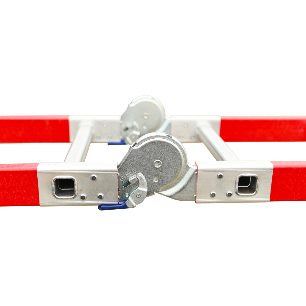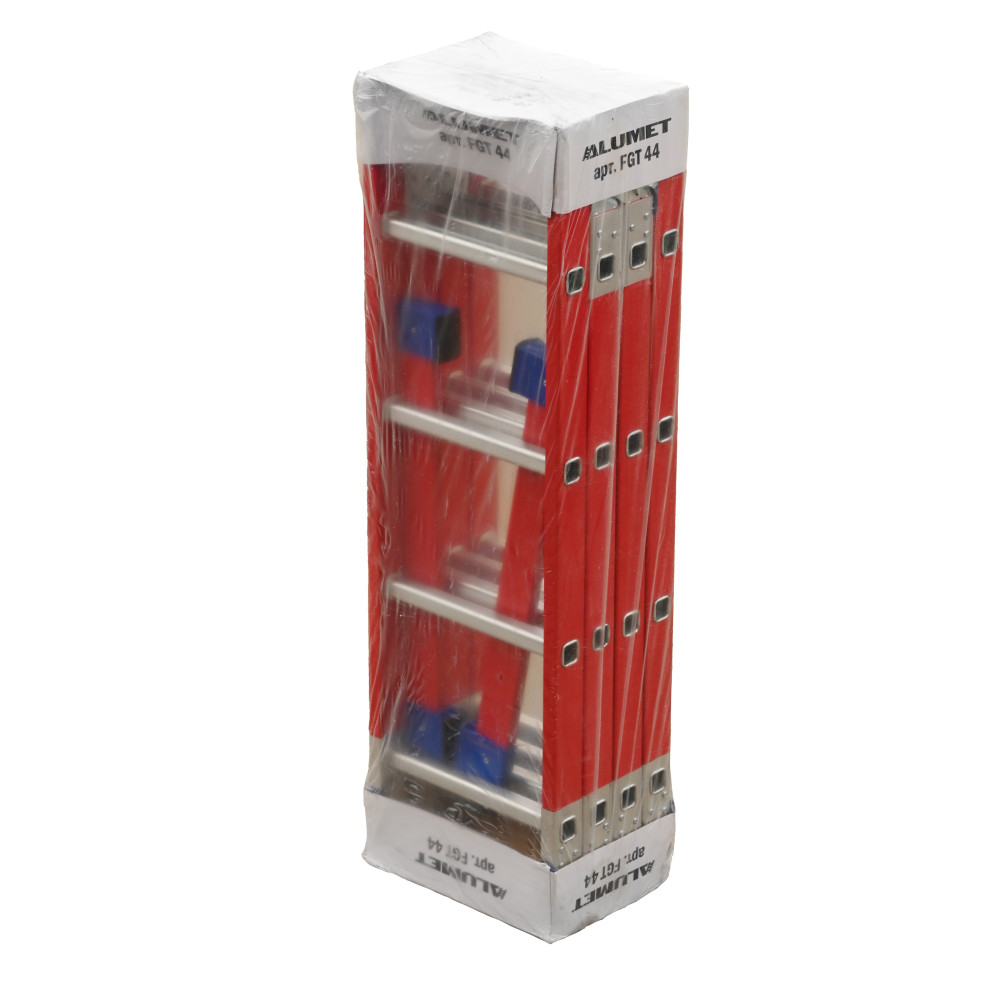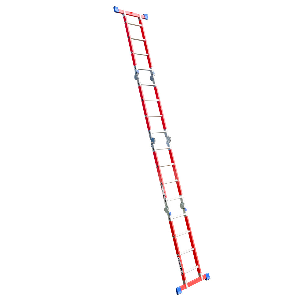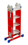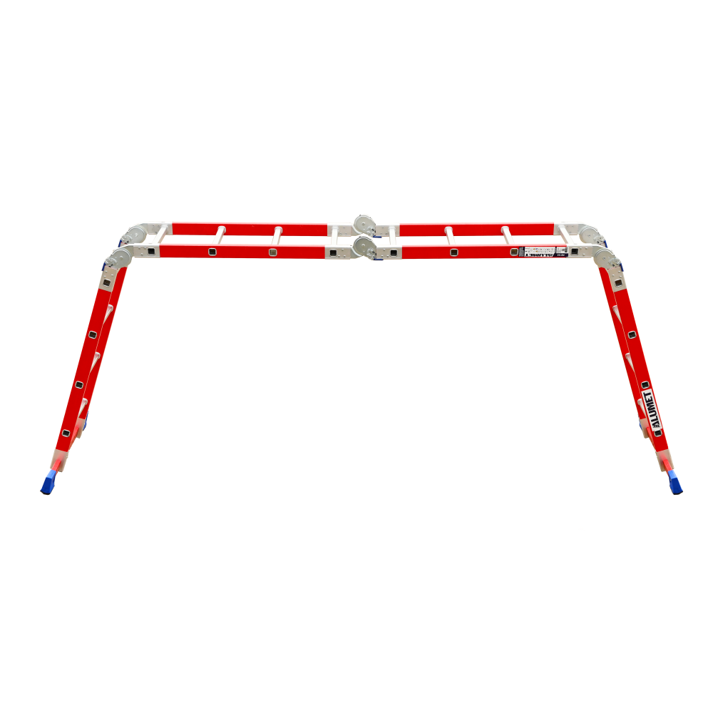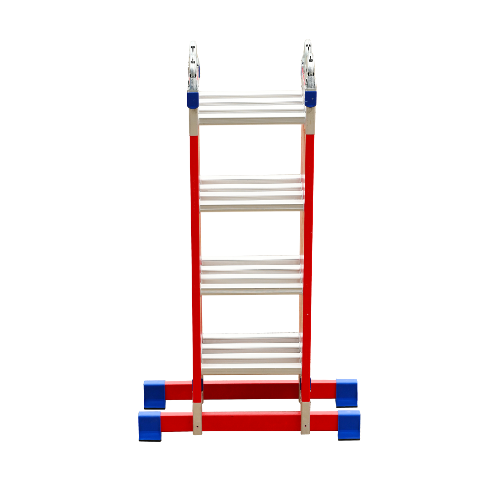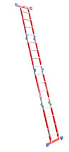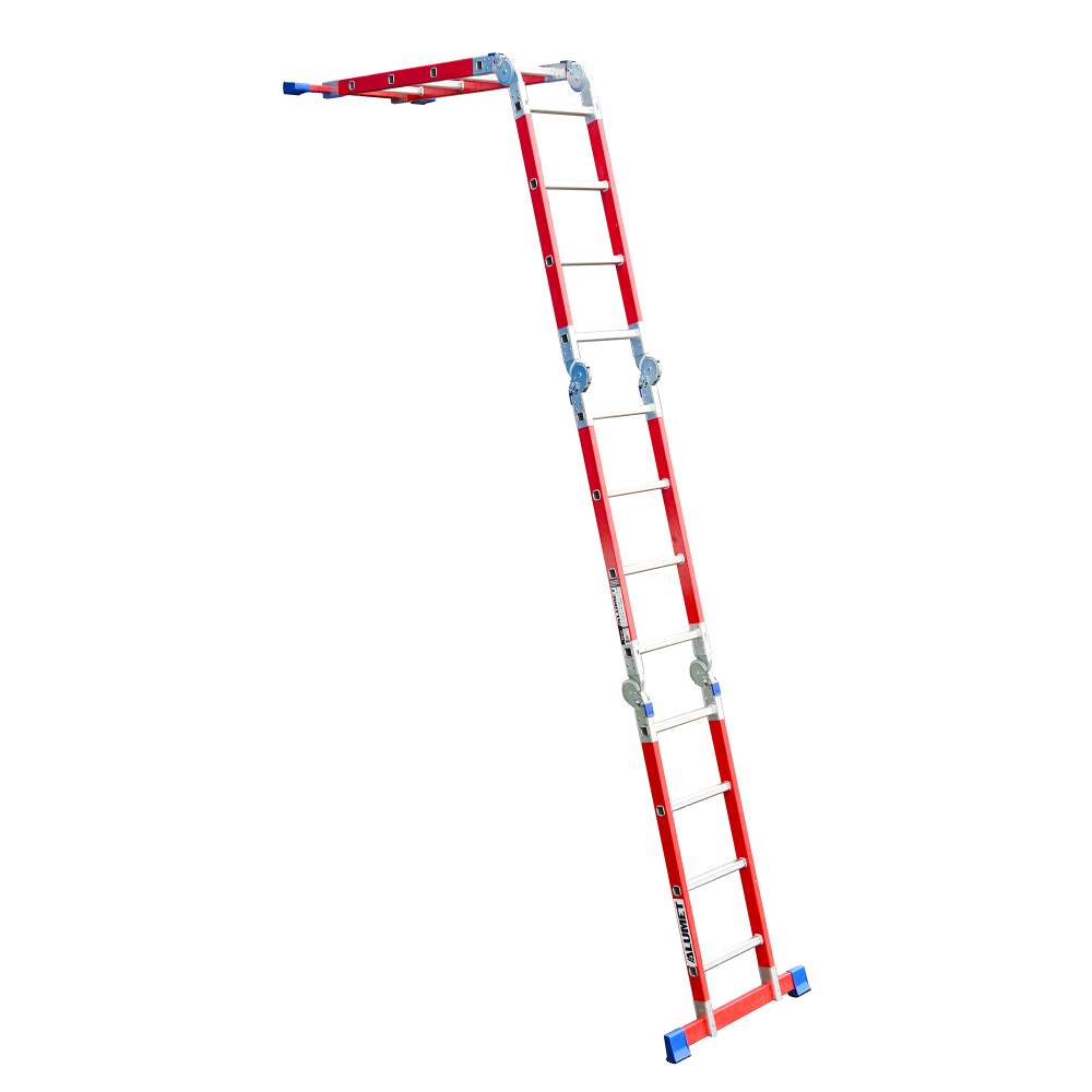 Лестница состоит из четырех секций, соединенных между собой стальными лестничными шарнирами с углами фиксации 35, 105 и 180 градусов. Поэтому такая лестница может принимать различные формы, такие как на рисунке.